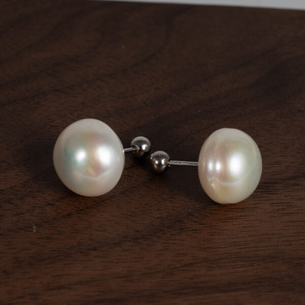 Bông Tai Ngọc Trai Trắng Hạt Tròn Trên Dưới Size Lớn DE1035
