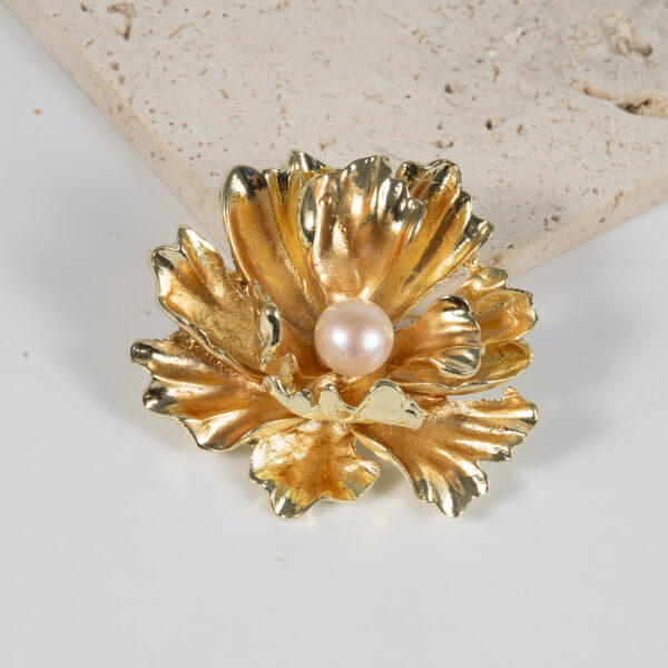 Cài Áo Ngọc Trai Mẫu Đơn Vàng BR0102