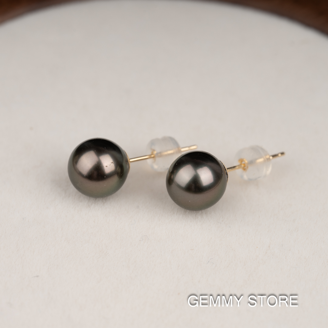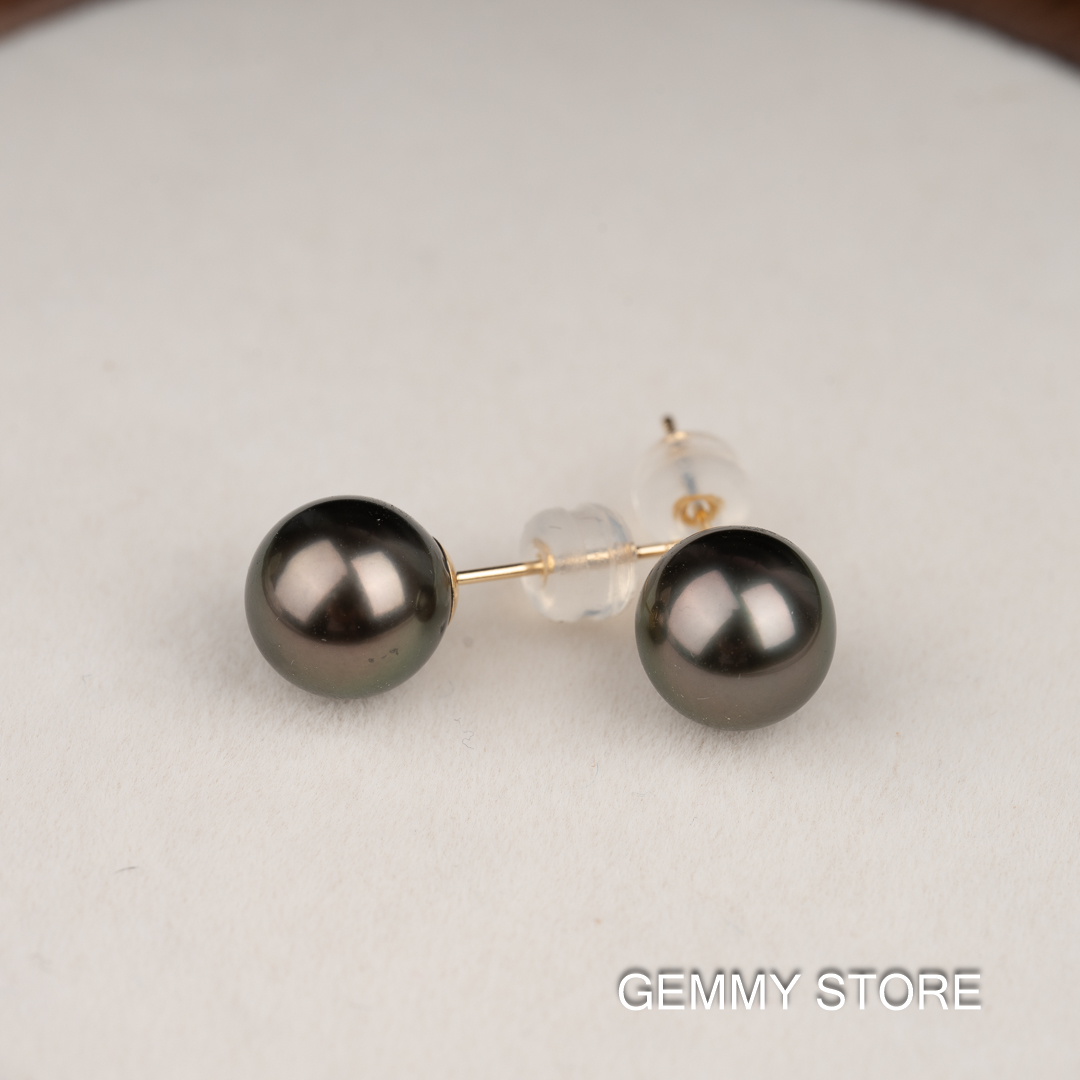 Pearl Type: Tahitian Saltwater Color: Blue-Black Shape: Round Size: 8.3-8.4mm Material: 18k Gold