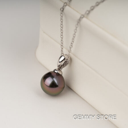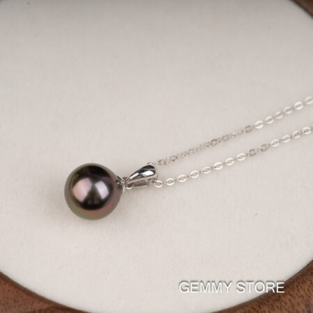 Pearl Type: Tahitian Saltwater Color: Peacock Shape: Sphere Size: 9.8-9.9mm Material: 18k Gold Free S925 Silver Chain Included