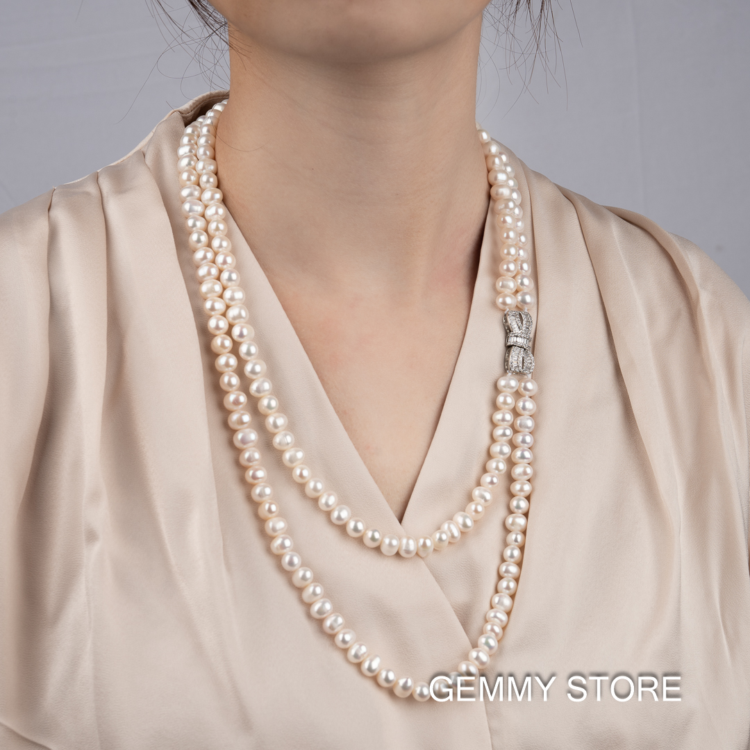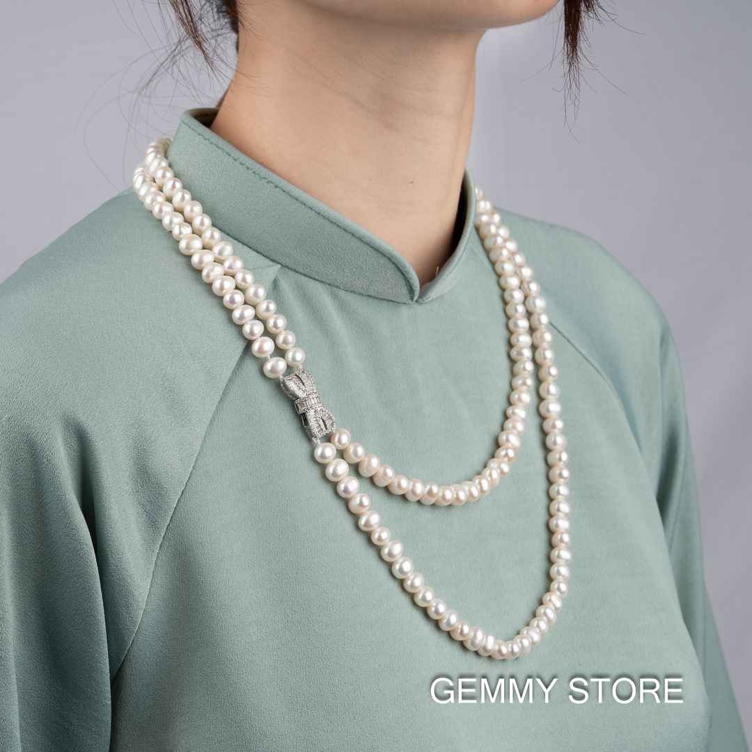 7-8mm White Pearl Bracelet 2 Layers NE1034