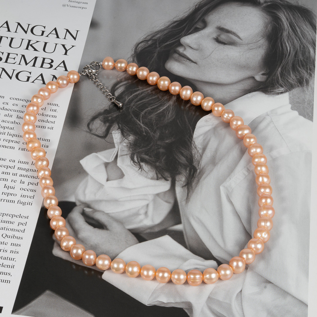 7mm Pink Pearl Necklace NE1071-Hong