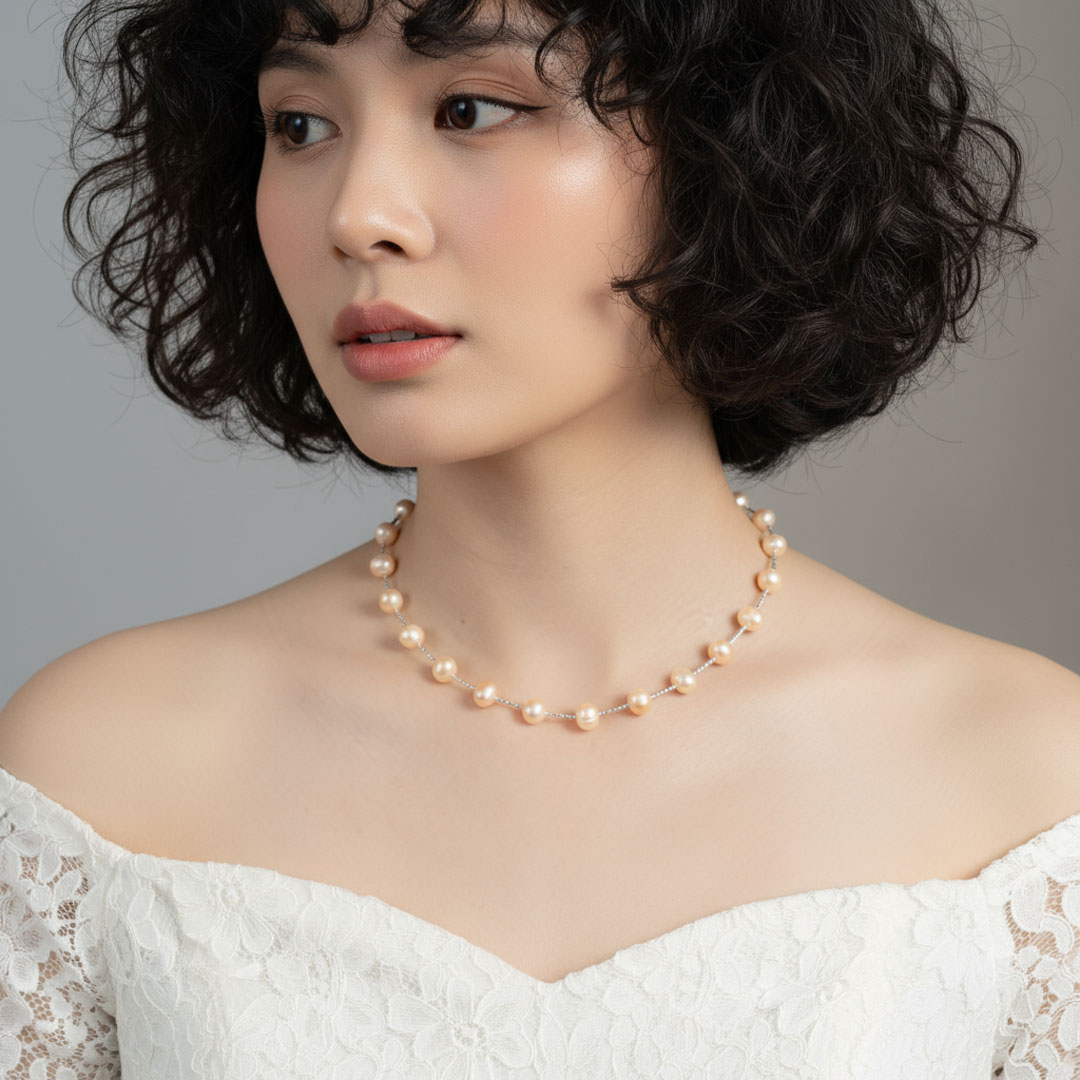 Pearl Type: Freshwater Cultured Pearl Color: Pink Shape: Egg Size: 8-8.5mm/bead Length: 40+3cm Material: S925 Silver