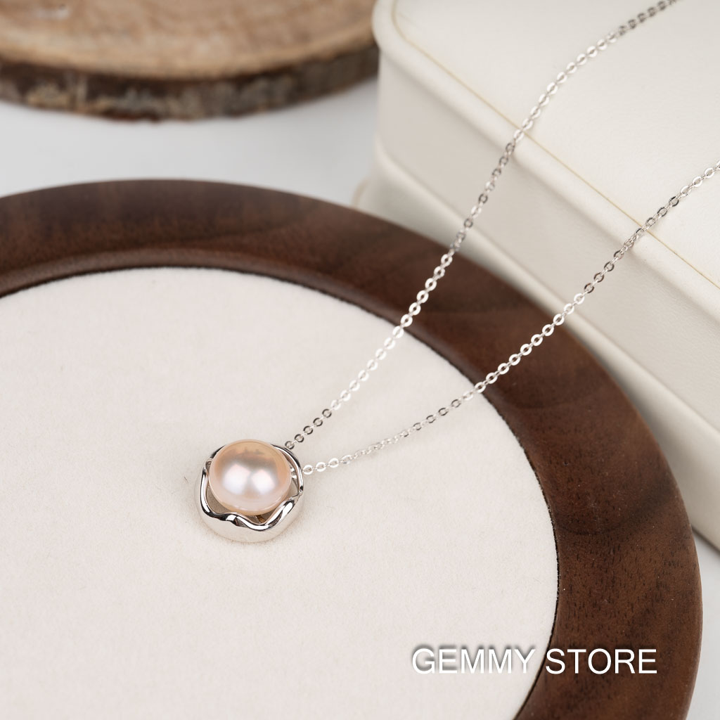 Pearl Type: Freshwater Pearl Color: Pink Shape: Button Size: 8-8.5mm Material: S925 Silver