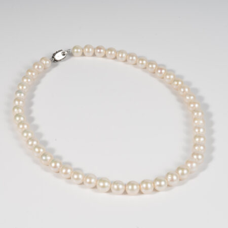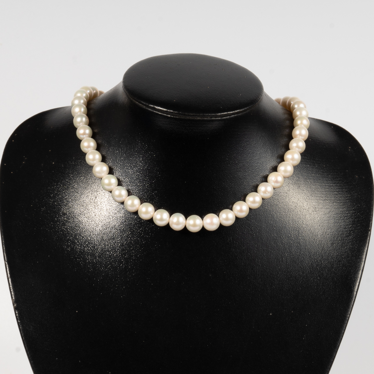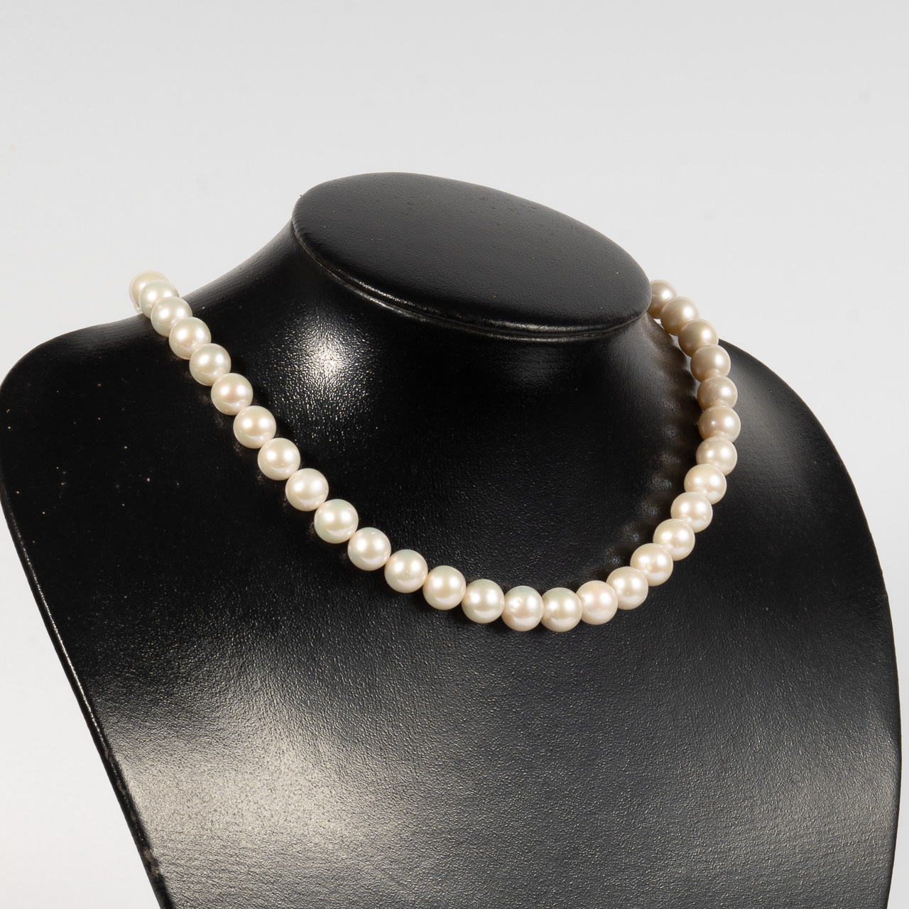 Pearl Type: Freshwater Cultured Pearl Color: White Shape: Near round Size: 8.5-9mm/bead Length: 41cm