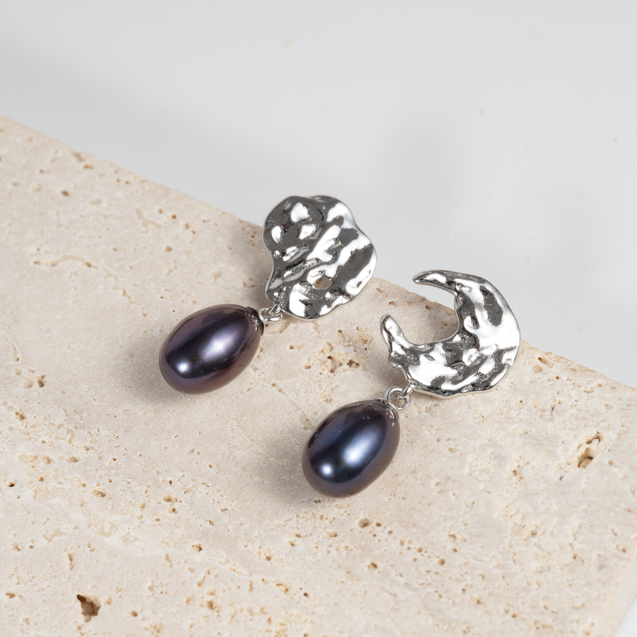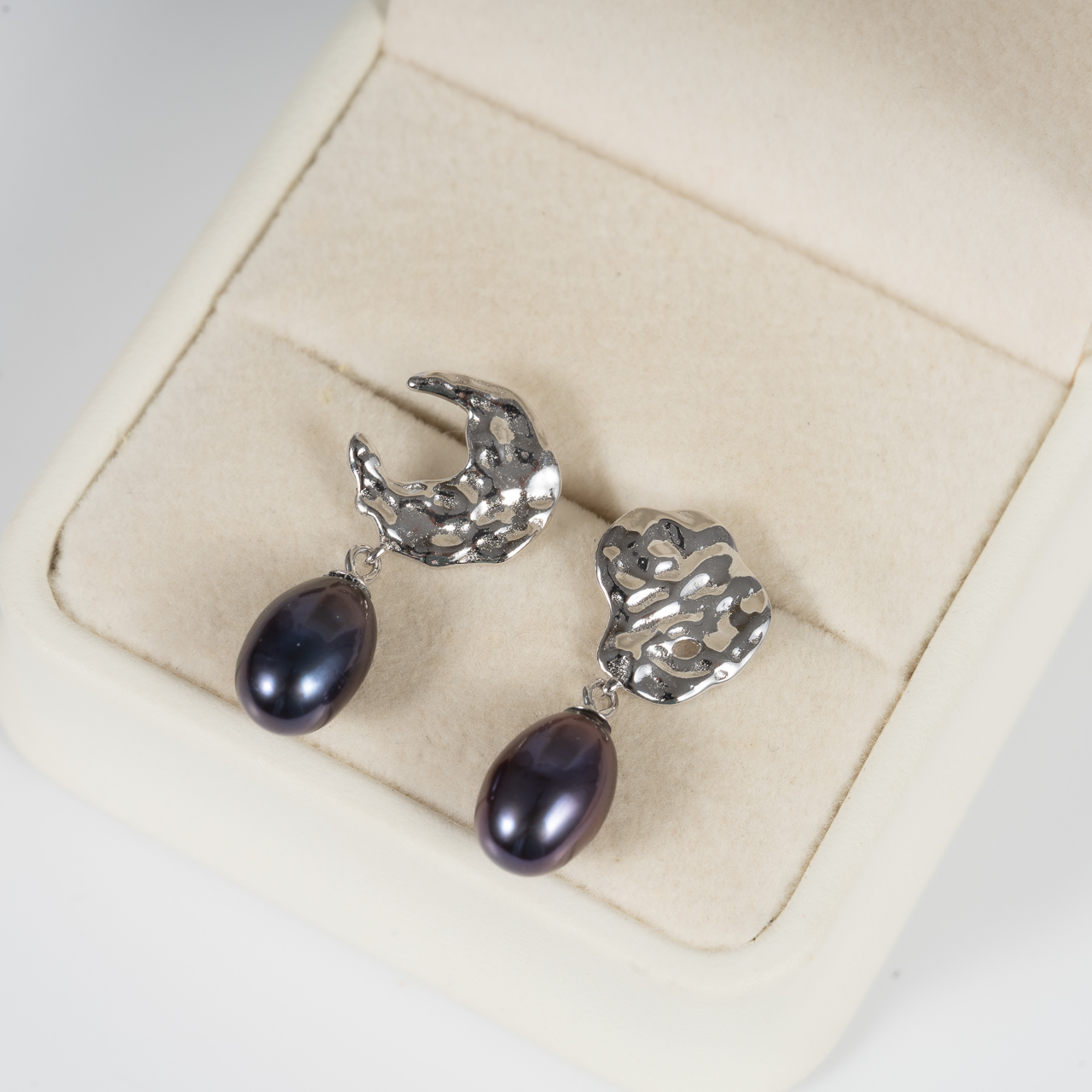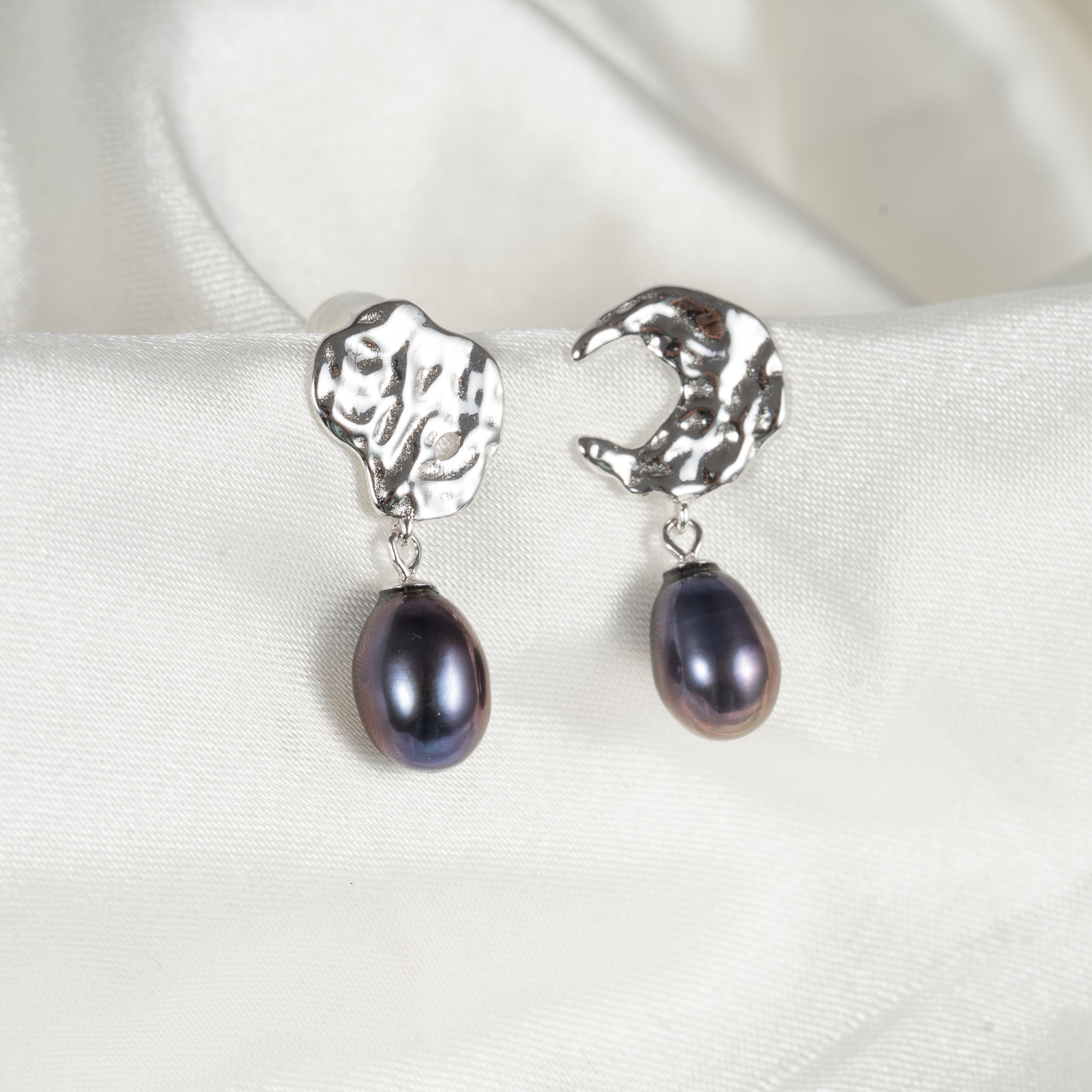 Pearl Type: Freshwater Pearl Color: Black Shape: Teardrop Size: 7-9mm Material: S925 Silver