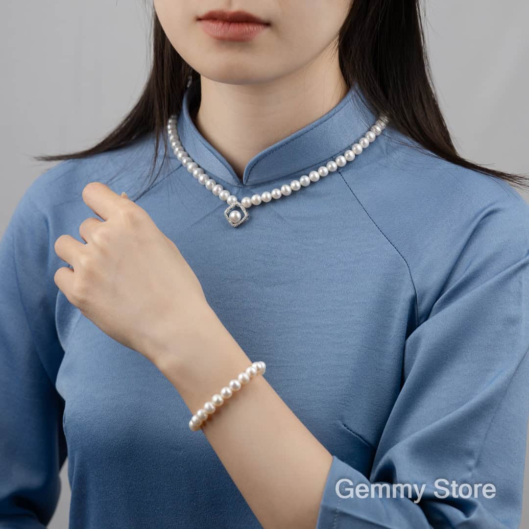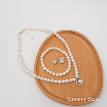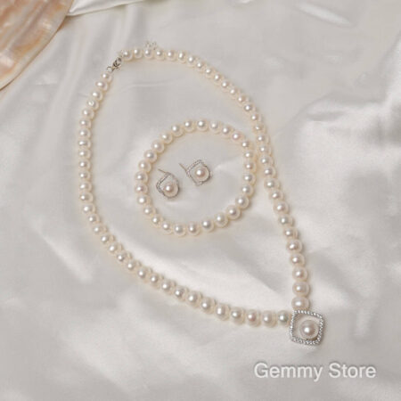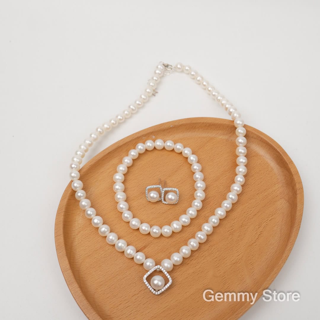 Pearl Jewelry Set with Square Silver Accents BT200