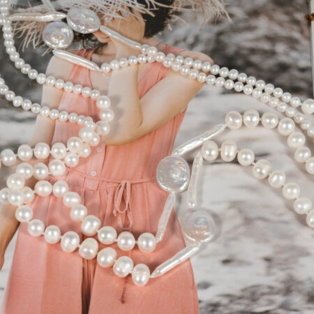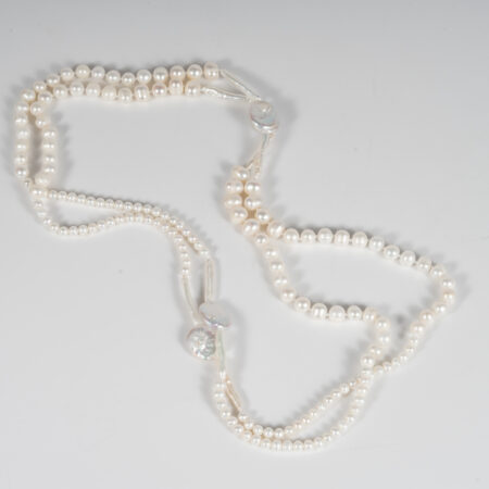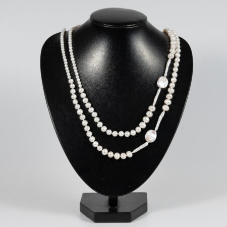 Long Pearl Necklace with 108 Beads and Red Agate Stones NP1074