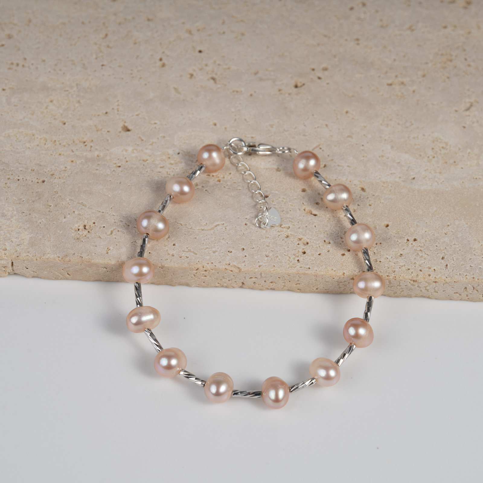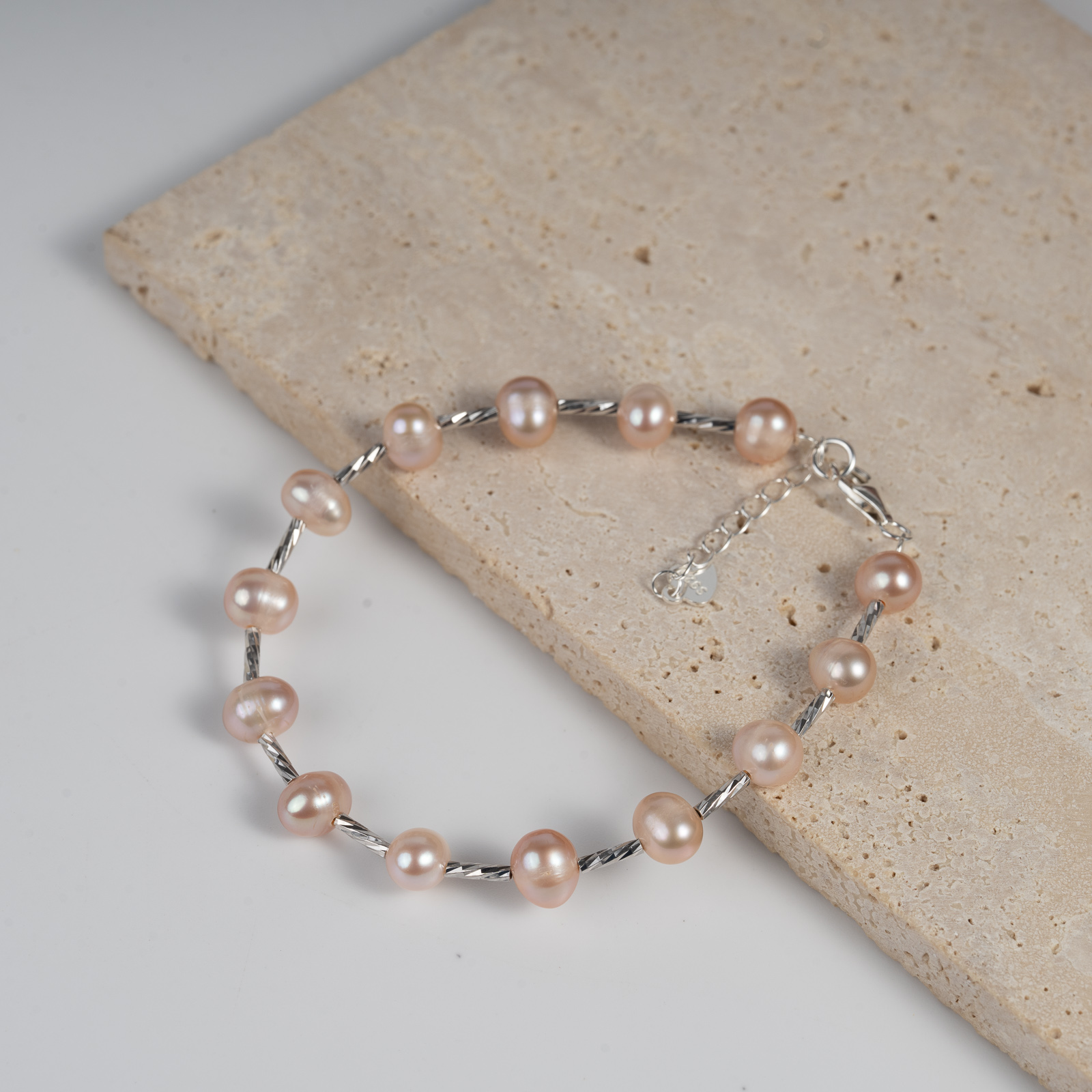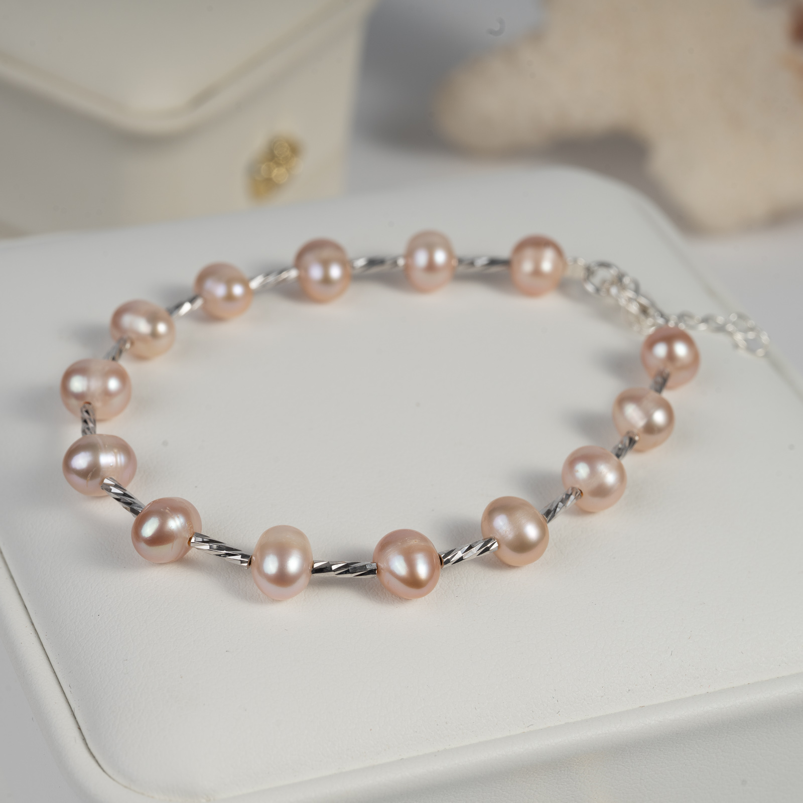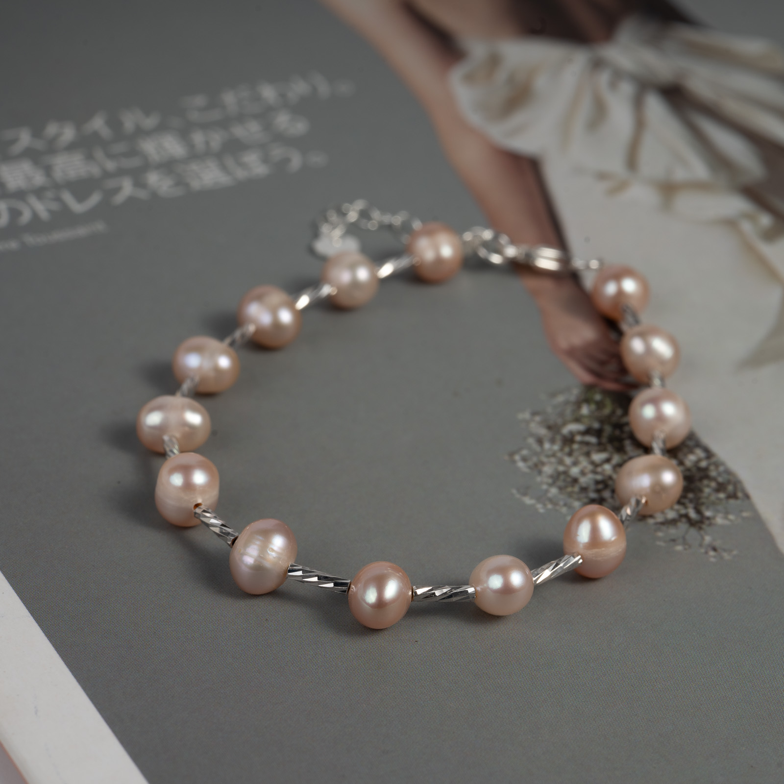 Pearl type: Freshwater cultured pearl Color: Purple Shape: Egg-shaped Size: 6-6.5mm Length: 18+2cm S925 Silver