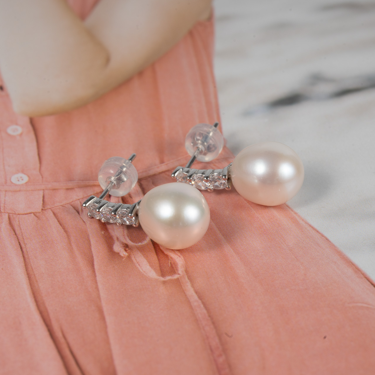 Pearl Type: Freshwater Pearl Color: White Shape: Teardrop Size: 9-10mm Material: S925 Silver