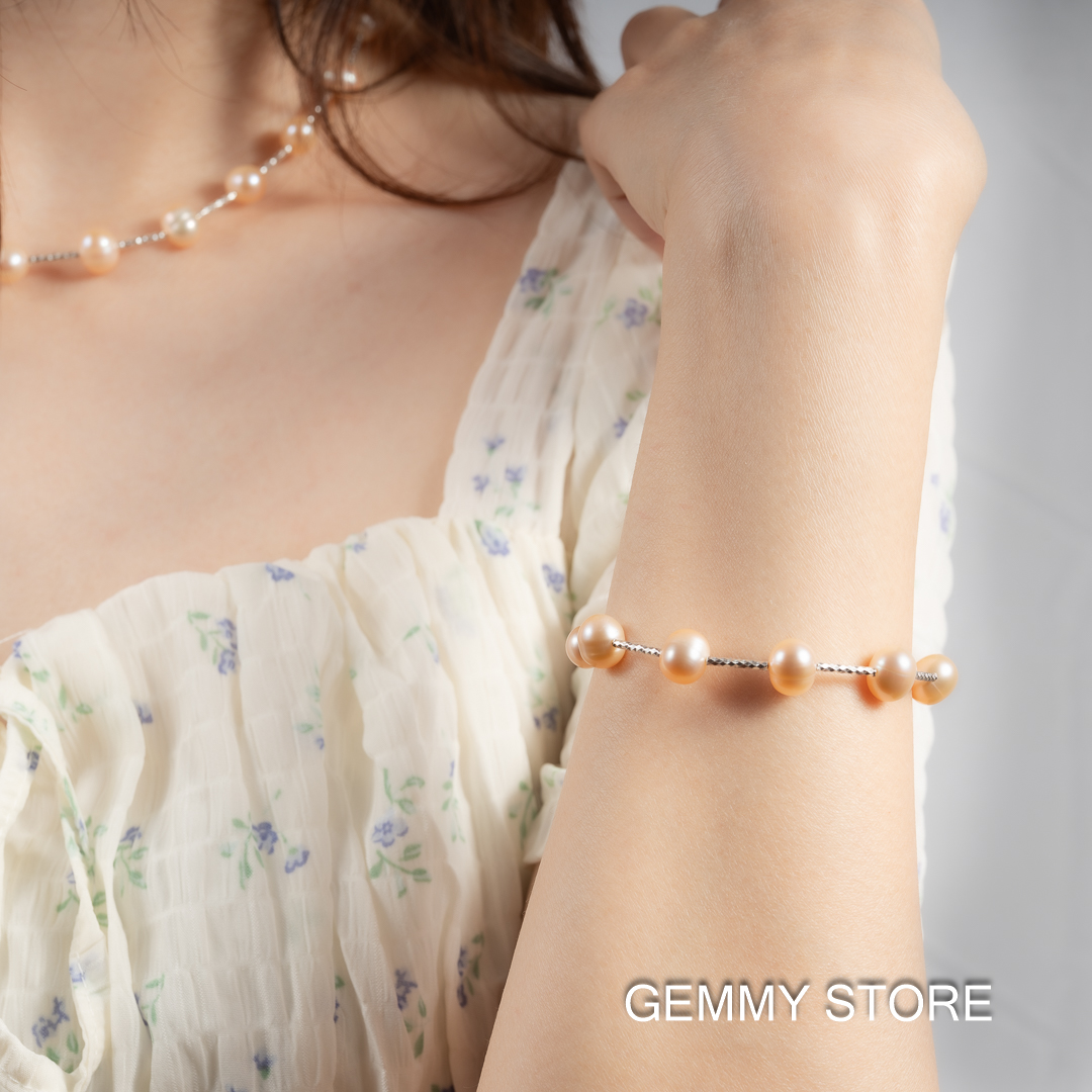 Pink Pearl Bracelet with Beads and Silver Bar BC1023