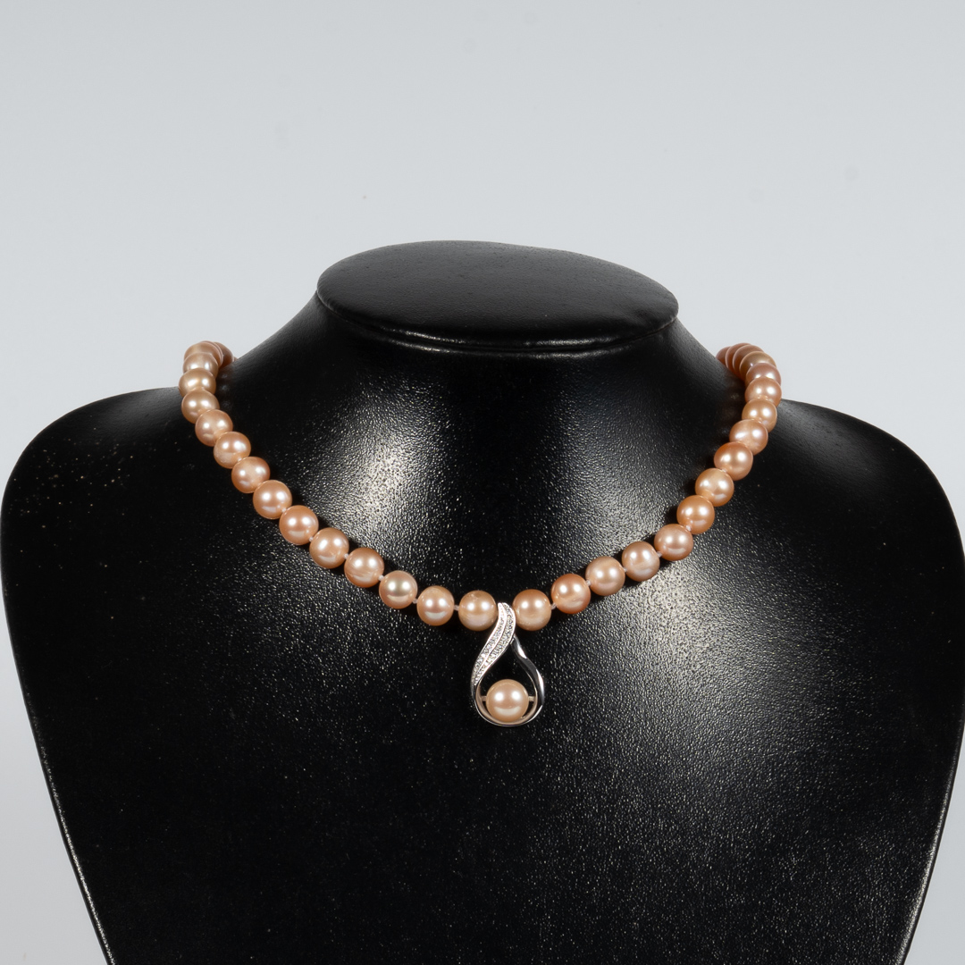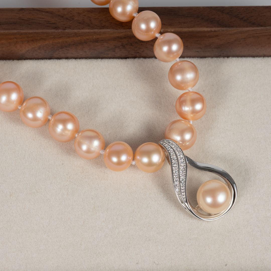 Pearl Type: Freshwater Cultured Pearl Color: Pink Shape: Near round/Button Size: 8-9mm Length: 44-45cm S925 Silver