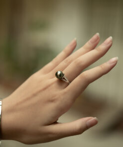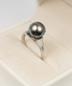 Round Black Tahitian Pearl Ring S925 Crown 10mm SR1024