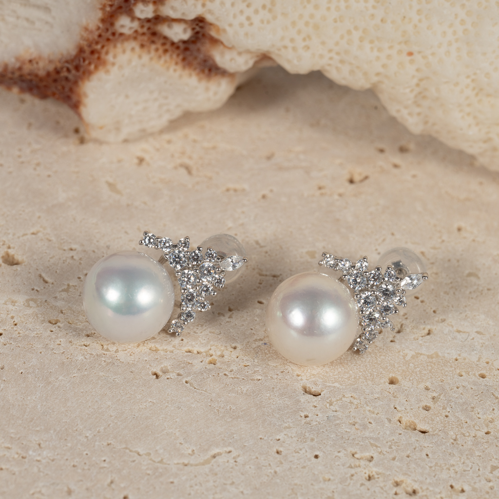Round White Pearl Earrings with Outstanding Stones SE1076