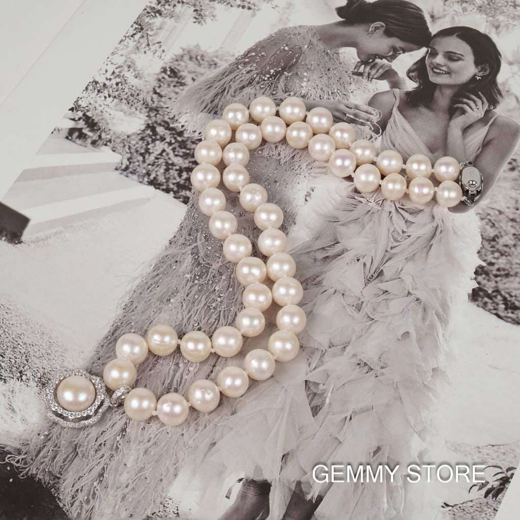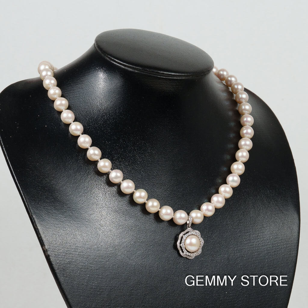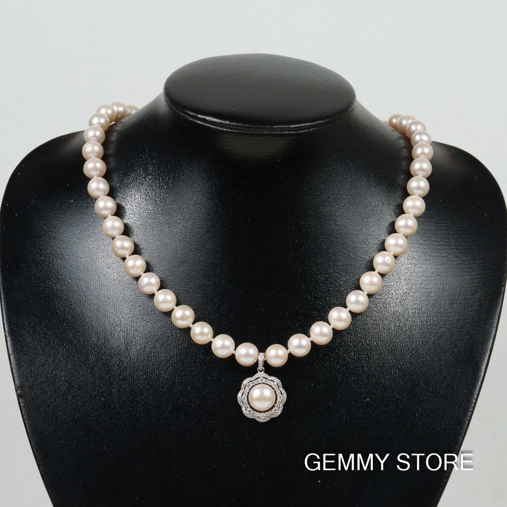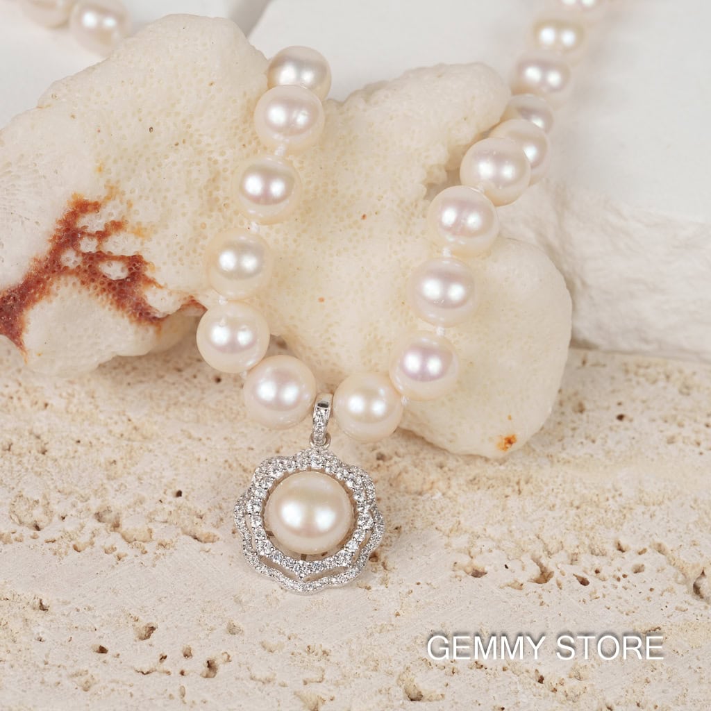 Pearl Necklace with Two-Layer Sparkling Stone Border Pearl Pendant NP1035