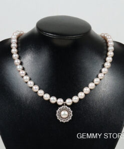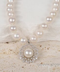 Pearl Necklace with Pearl Pendant and Sparkling Stone Border NP1034