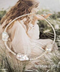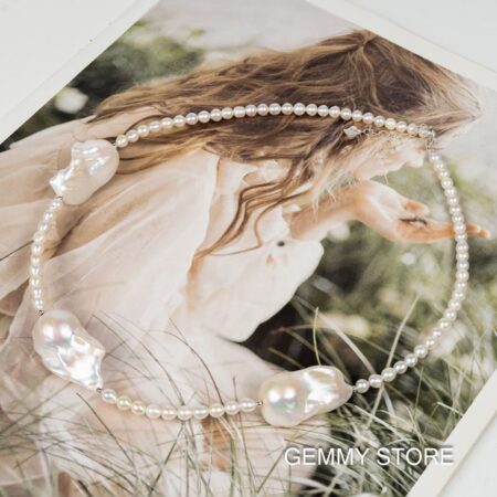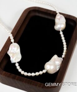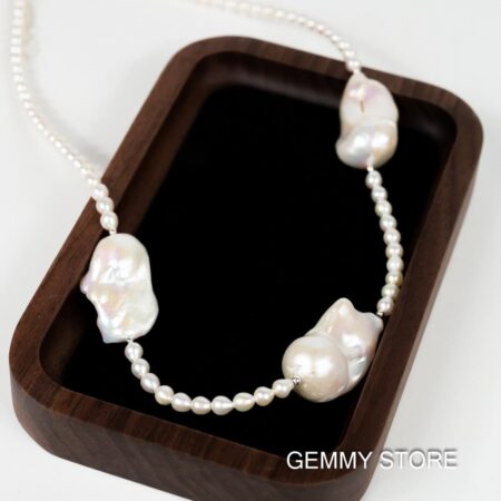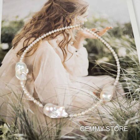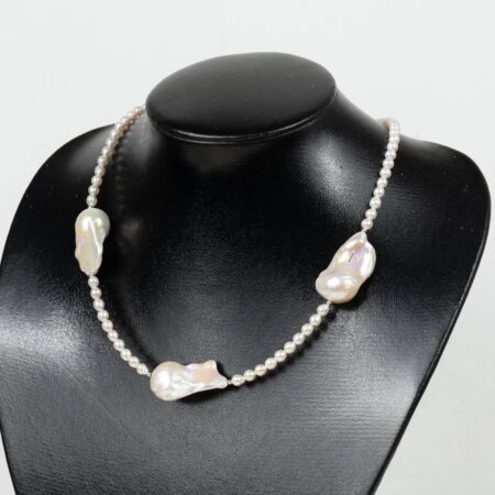 Color: White Shape: Egg-shaped, Irregular (Baroque) Size: 4–5 mm per small bead; 14–20 mm per Baroque bead Length: 45 + 3 cm