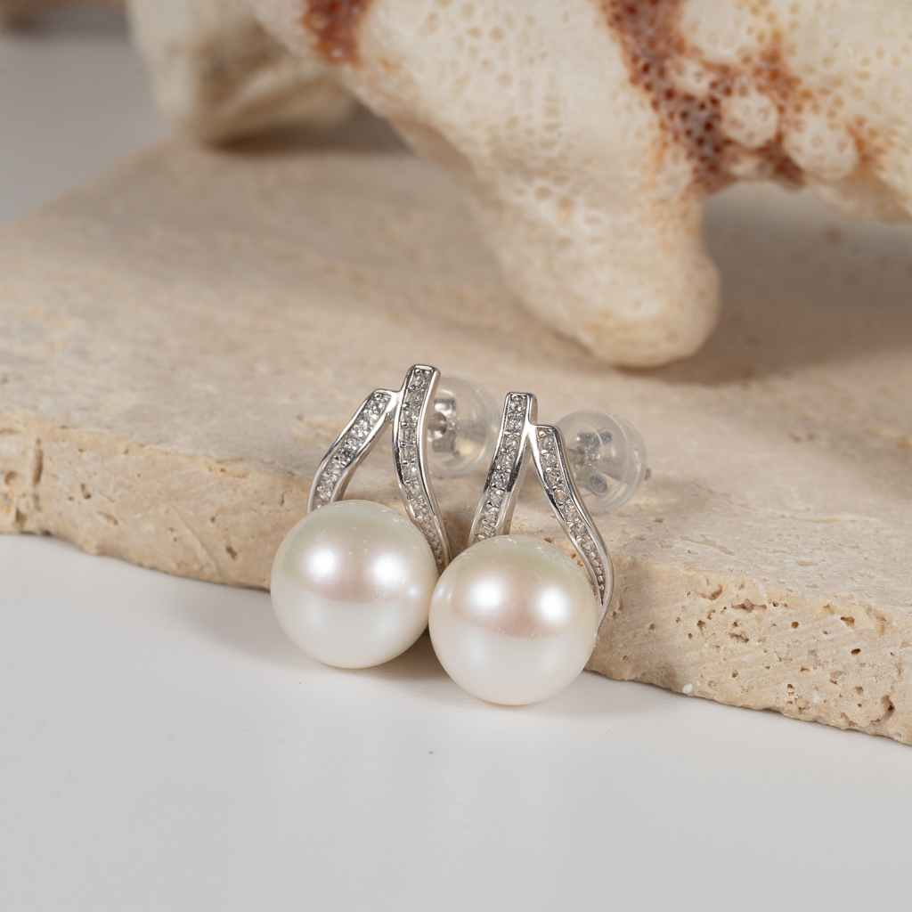 Pearl Type: Freshwater Cultured Pearl Color: White Shape: Button Size: 9-9.5mm Material: S925 Silver