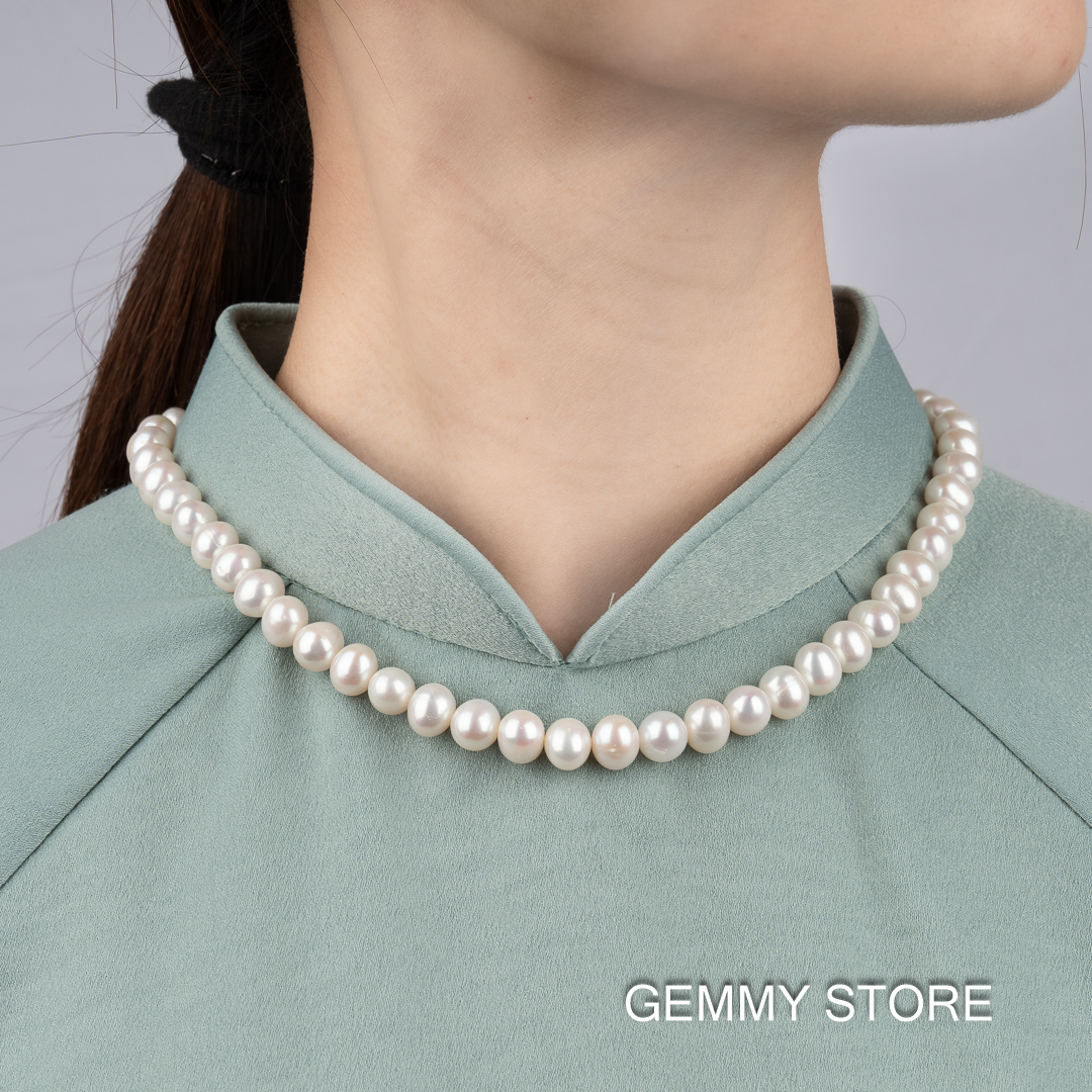 Pearl Type: Freshwater Cultured Pearl Color: White Shape: Egg Size: 8-9mm/bead Length: 42cm