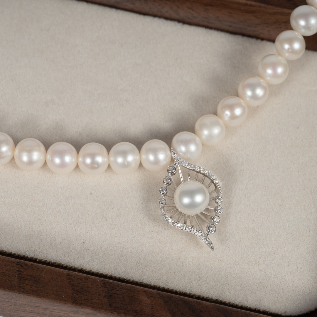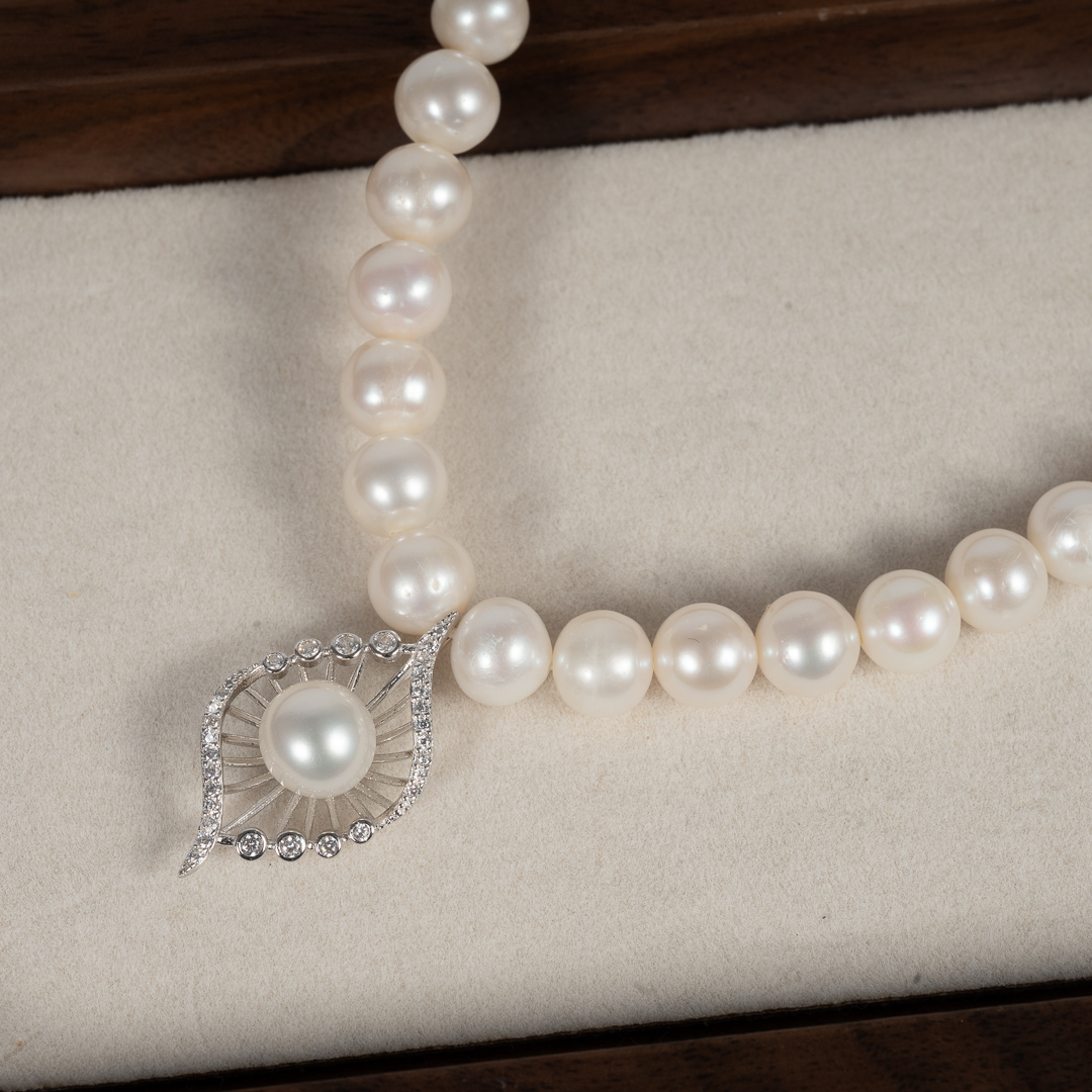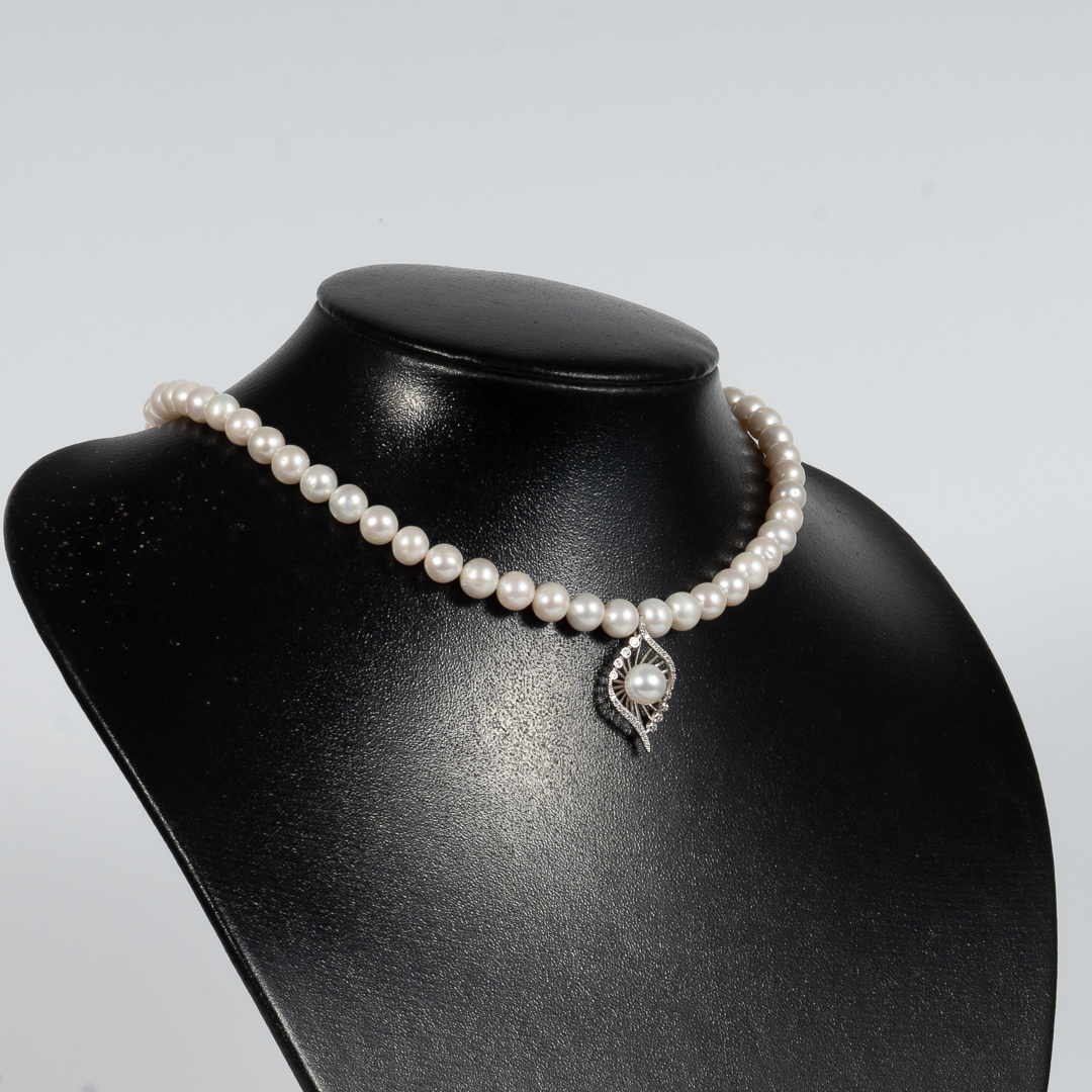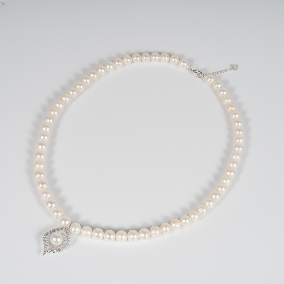Pearl Type: Freshwater Cultured Pearl Color: White Shape: Near Round Size: 6.8-7.5mm Length: 41+3cm S925 Silver
