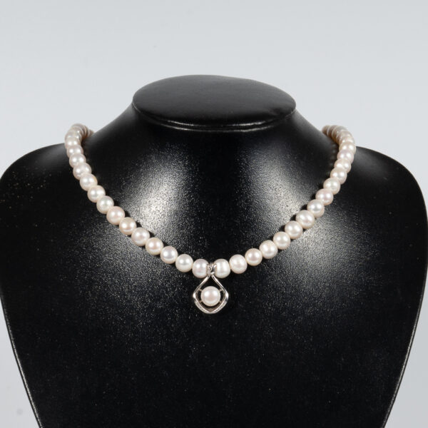 Vòng Cổ Ngọc Trai Trắng Mặt Bạc NP1070