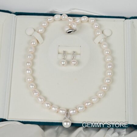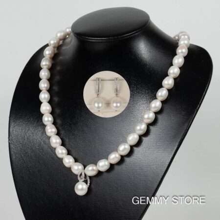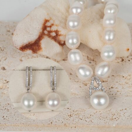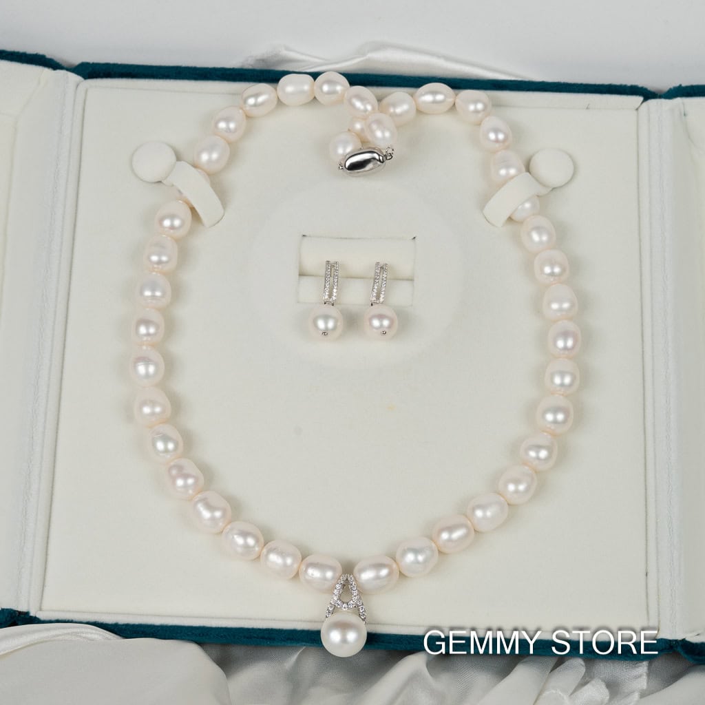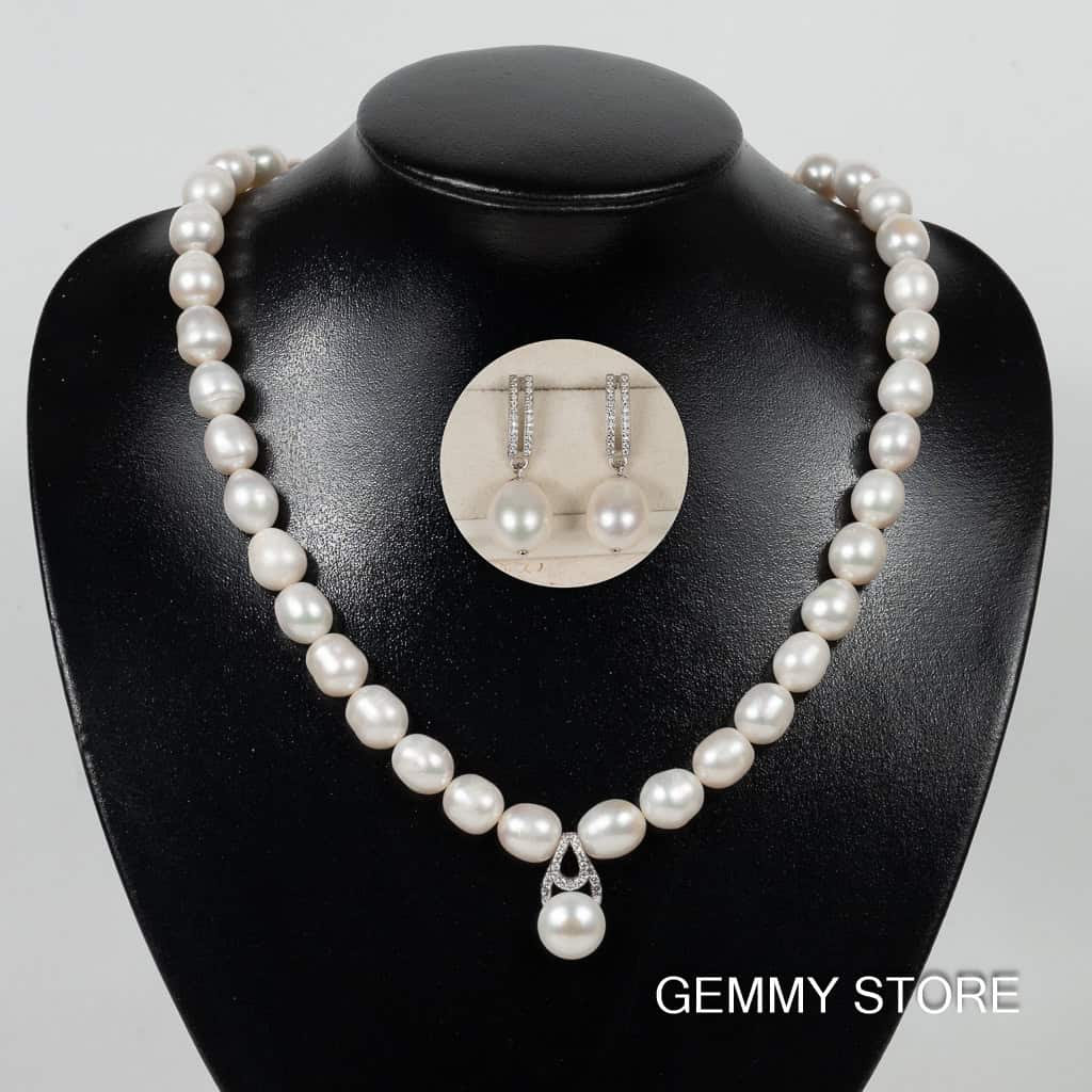 Bộ ngọc trai gồm vòng cổ dài có mặt bạc và bông tai dáng thả NP1023DE