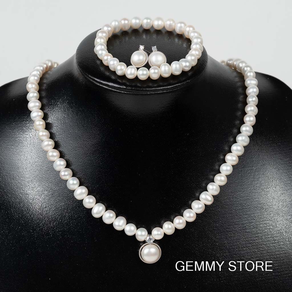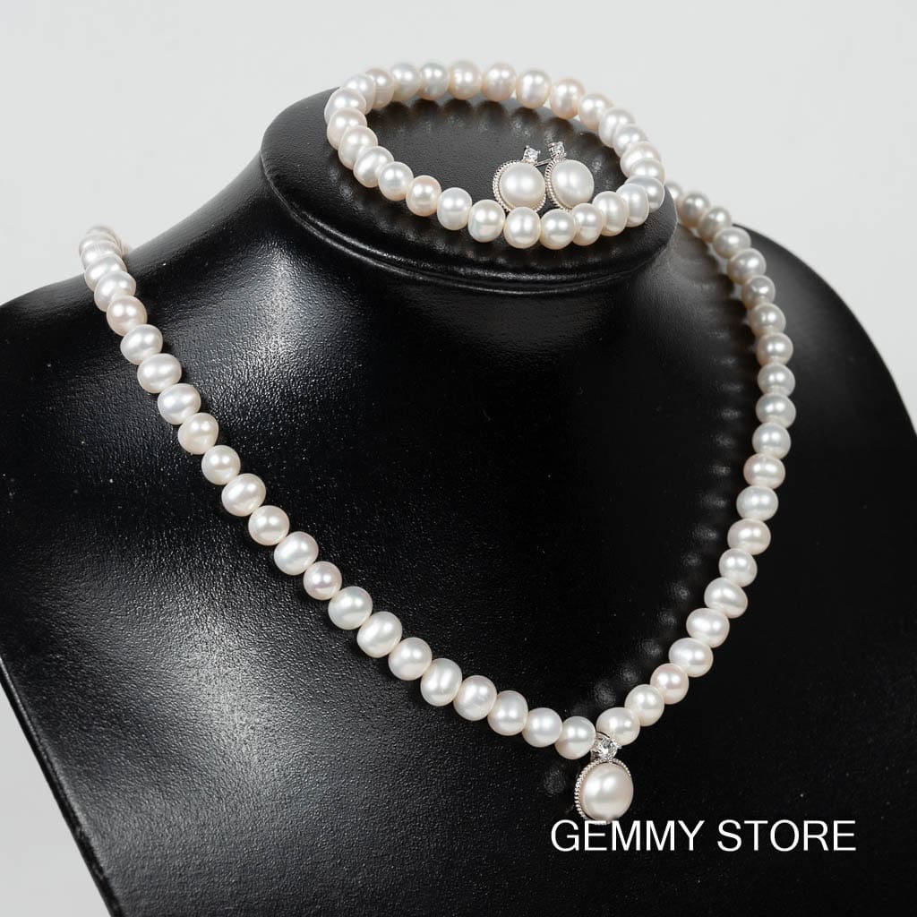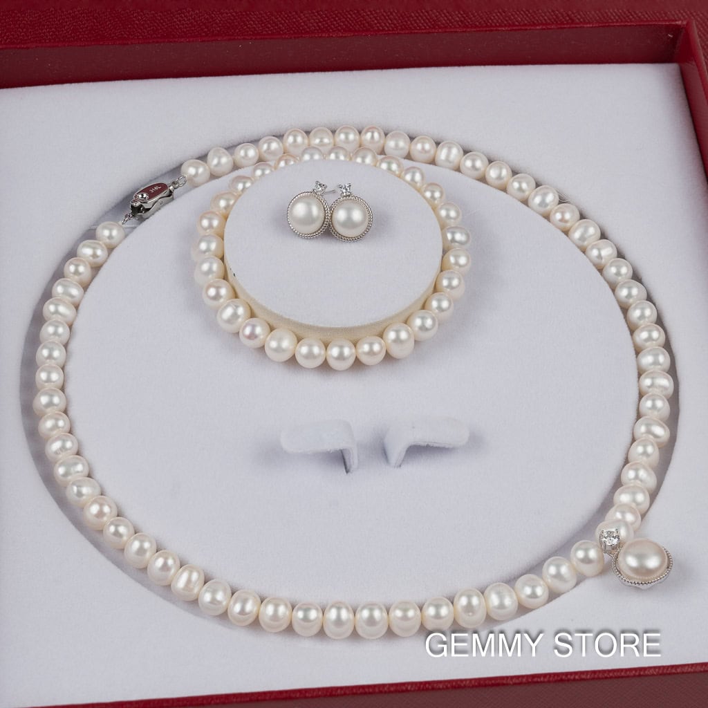 Bộ ngọc trai gồm vòng cổ, vòng tay và bông tai NP1017SB