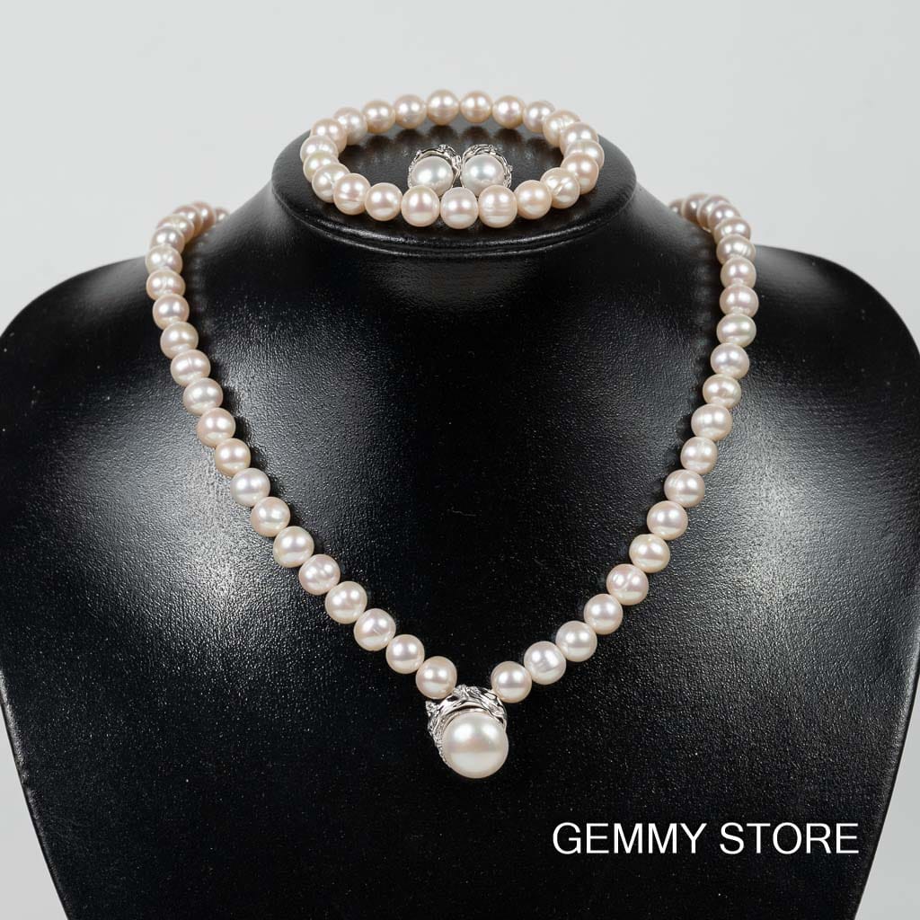 Bộ ngọc trai gồm vòng cổ vòng tay và bông tai NP1020SB