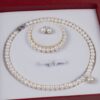 Bộ trang sức ngọc trai gồm vòng cổ và bông tai nụ đá cánh hoa NP1025SE