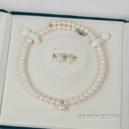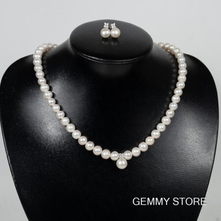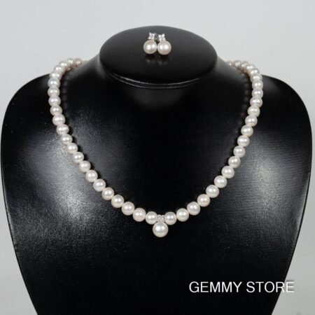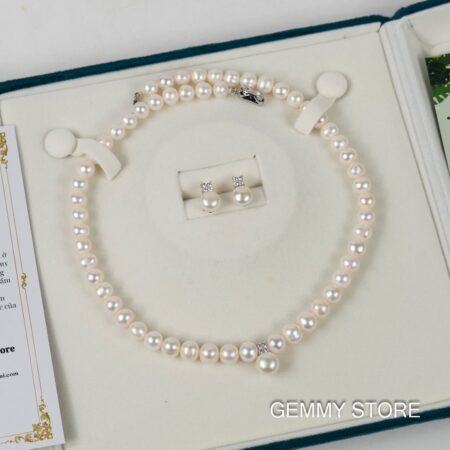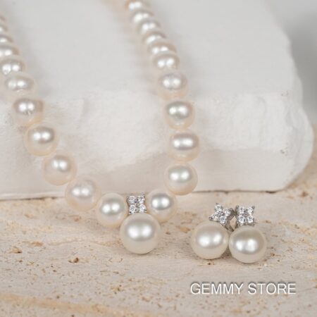 Bộ trang sức ngọc trai gồm vòng cổ và bông tai nụ đá cánh hoa NP1025SE