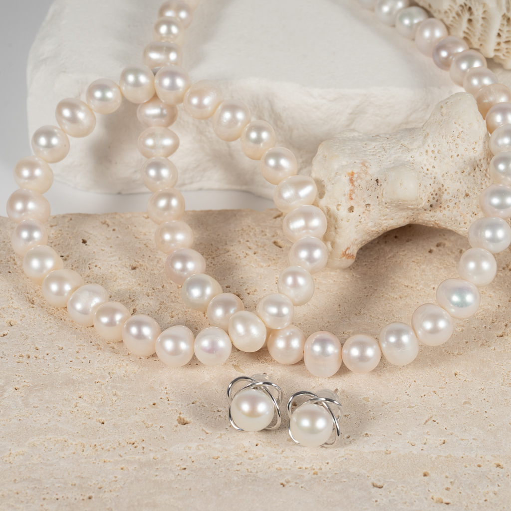Bộ Trang Sức Ngọc Trai Gồm Vòng Cổ,Vòng Tay Và Bông Tai NE1077BESE1067
