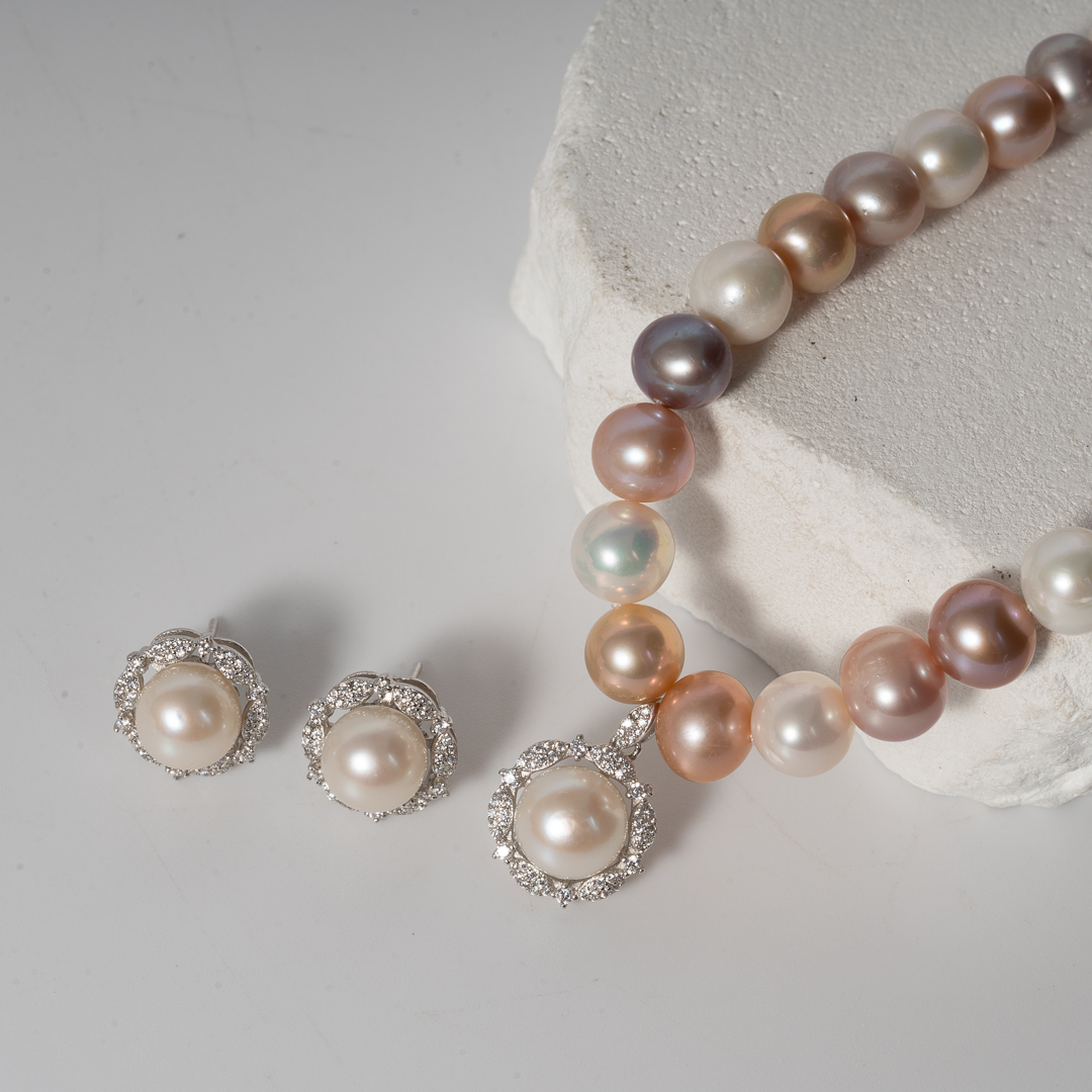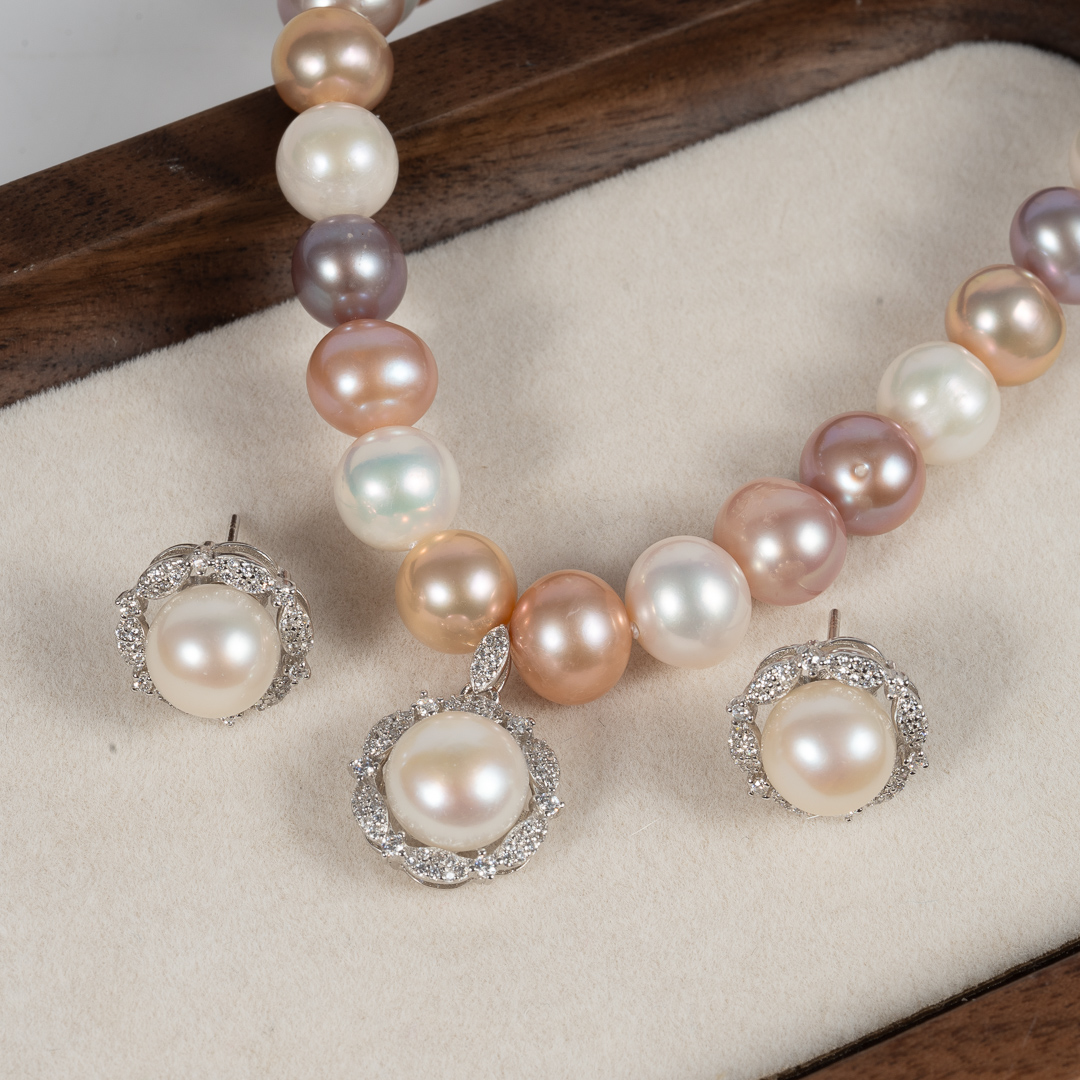 Bộ Trang Sức Ngọc Trai Vòng Cổ Có Mặt Và Bông Tai SET1011
