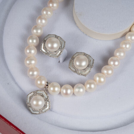 Bộ Trang Sức Ngọc Trai Vòng Cổ Có Mặt Và Bông Tai SET1014