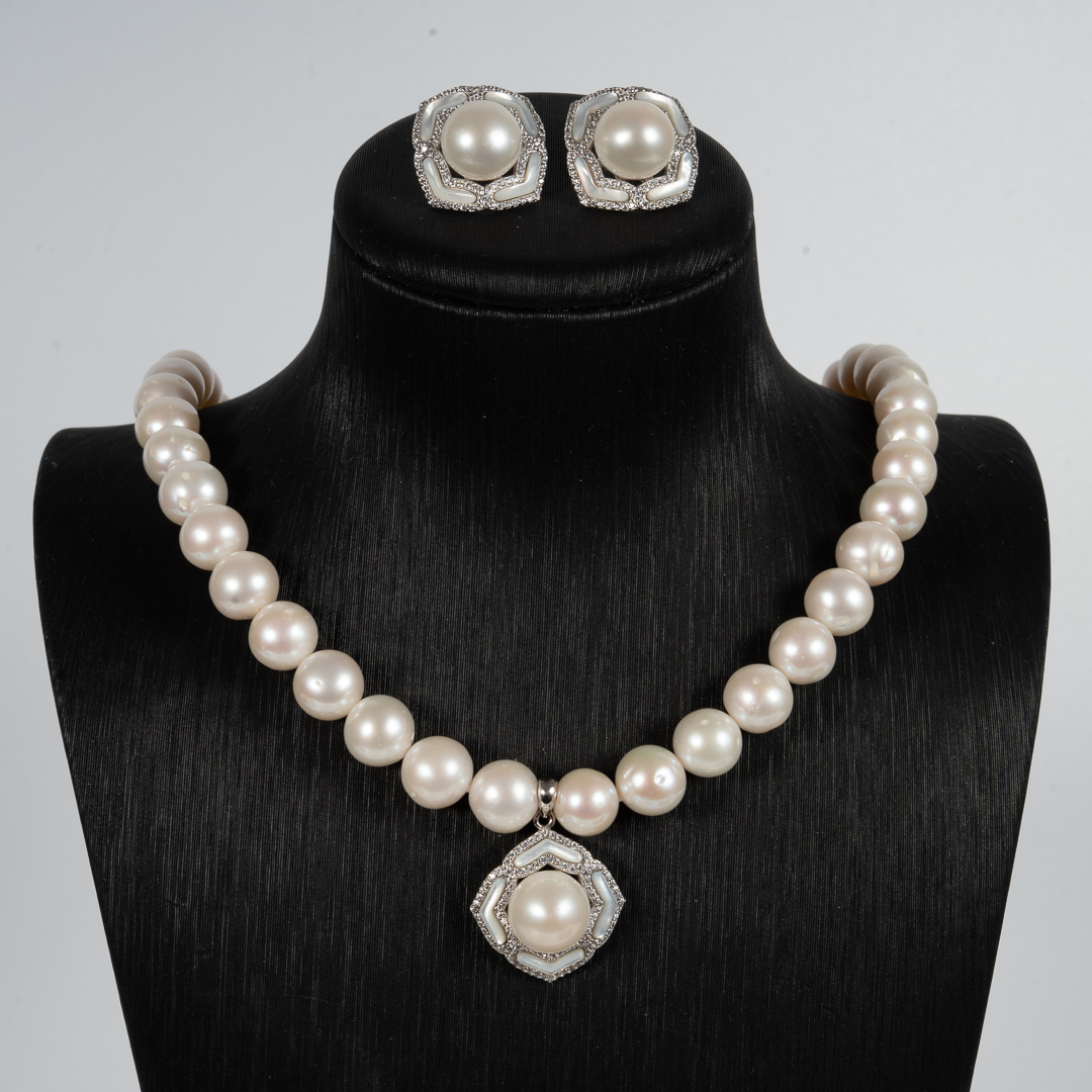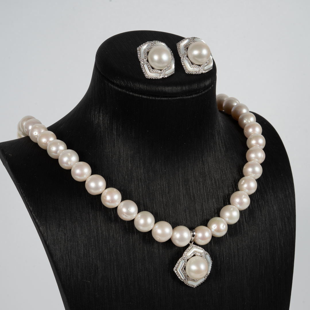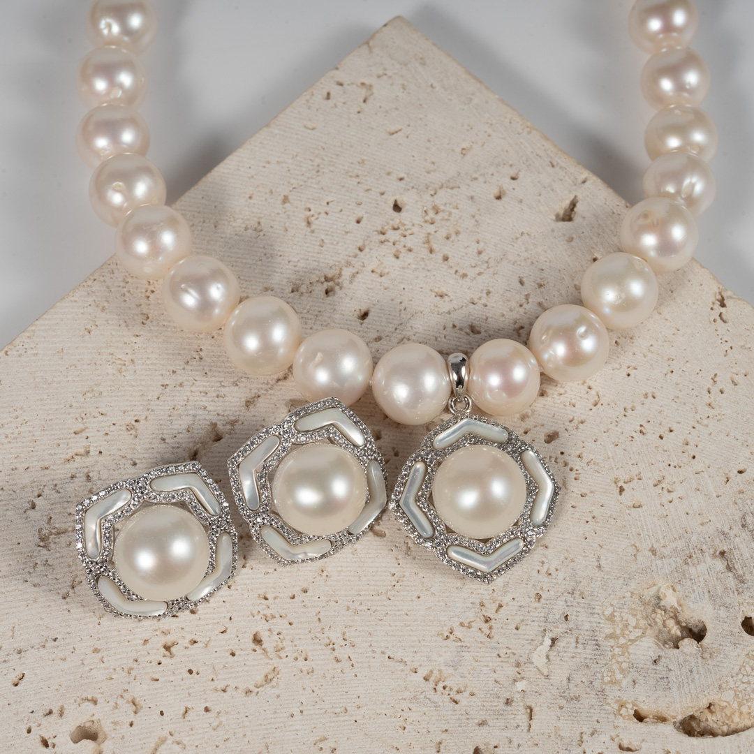Bộ Trang Sức Ngọc Trai Vòng Cổ Có Mặt Và Bông Tai SET1014