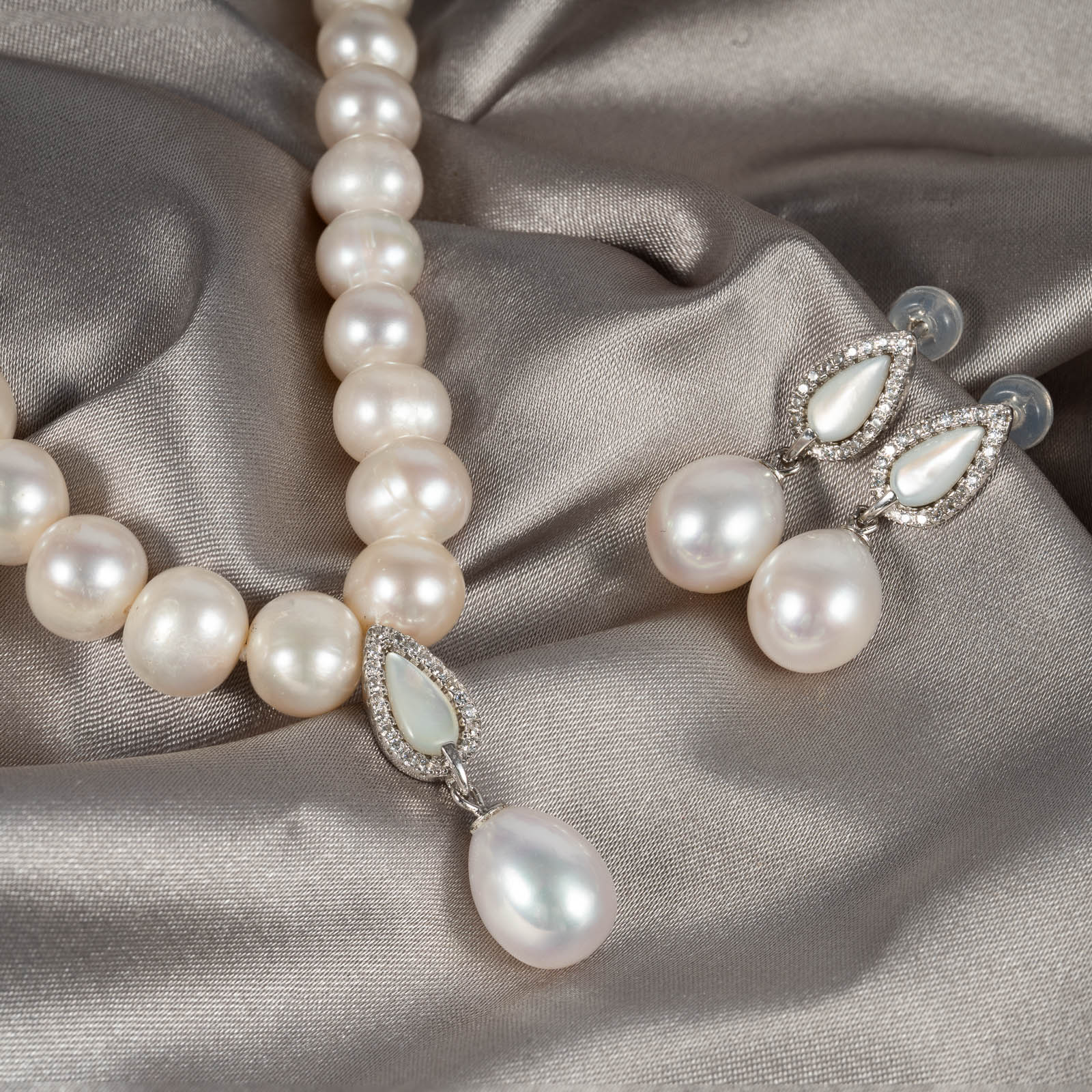Bộ Trang Sức Ngọc Trai Vòng Cổ Có Mặt Và Bông Tai SET1019