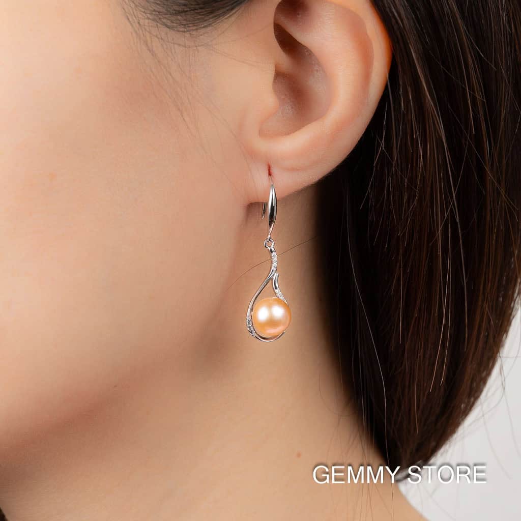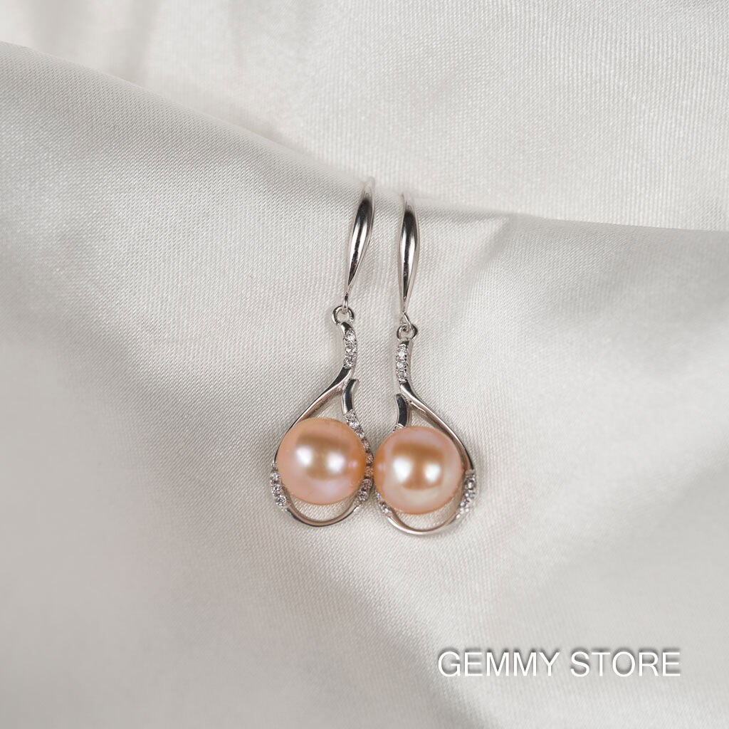 Bông Tai Ngọc Trai Bạc Dáng Thả Đá Lấp Lánh DE1024