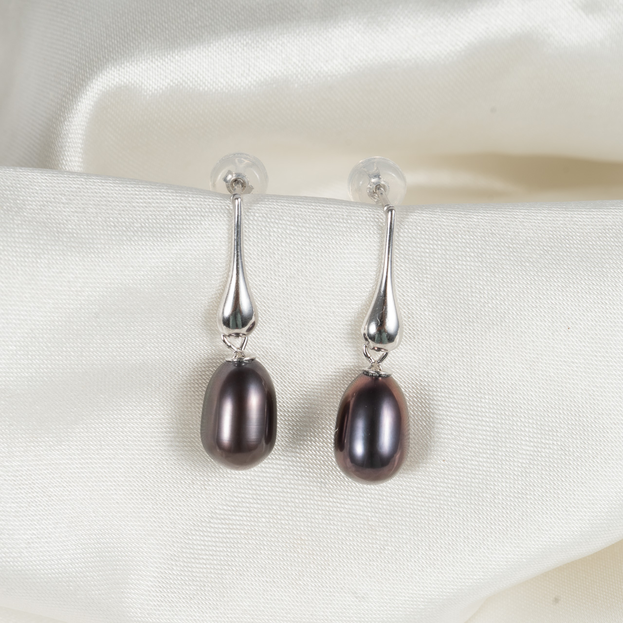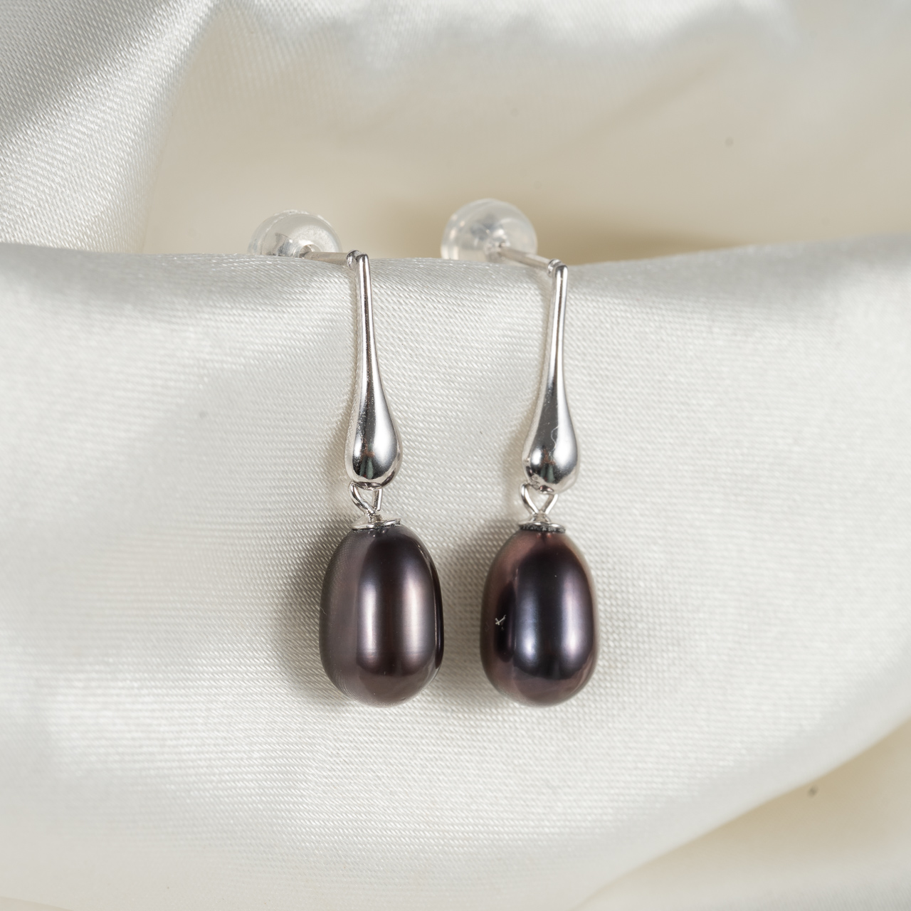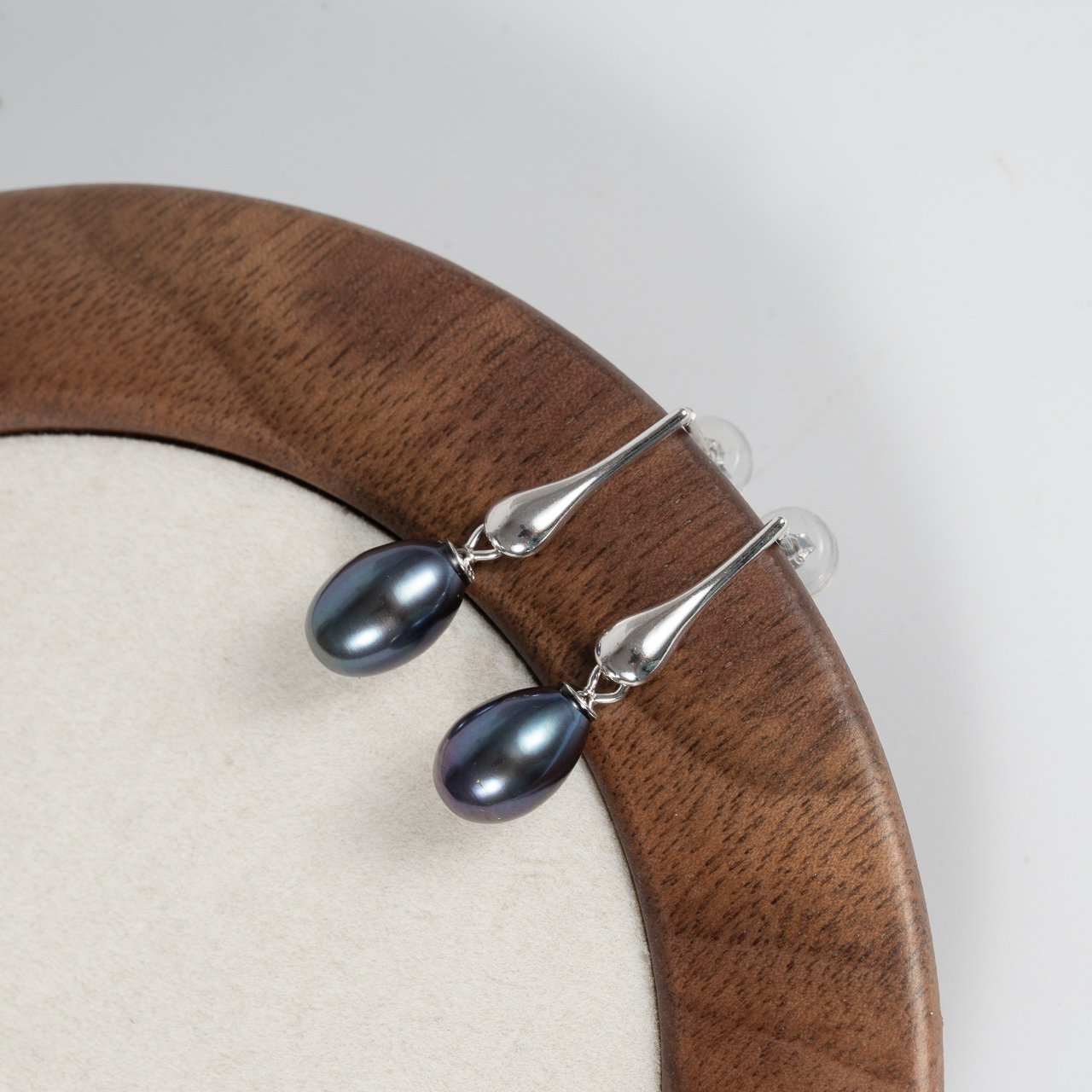 Bông Tai Ngọc Trai Đen Giọt Nước Dáng Thả DE1026