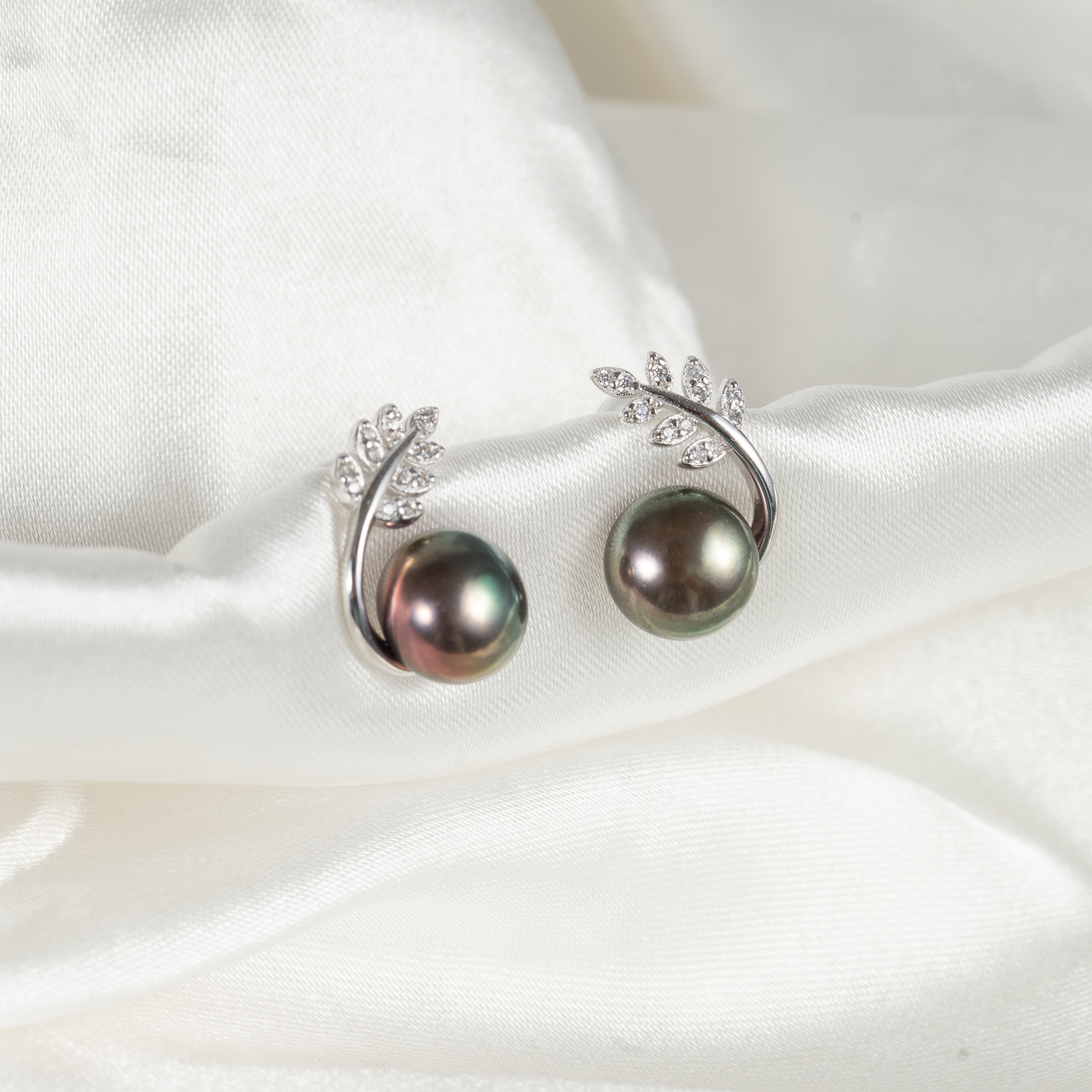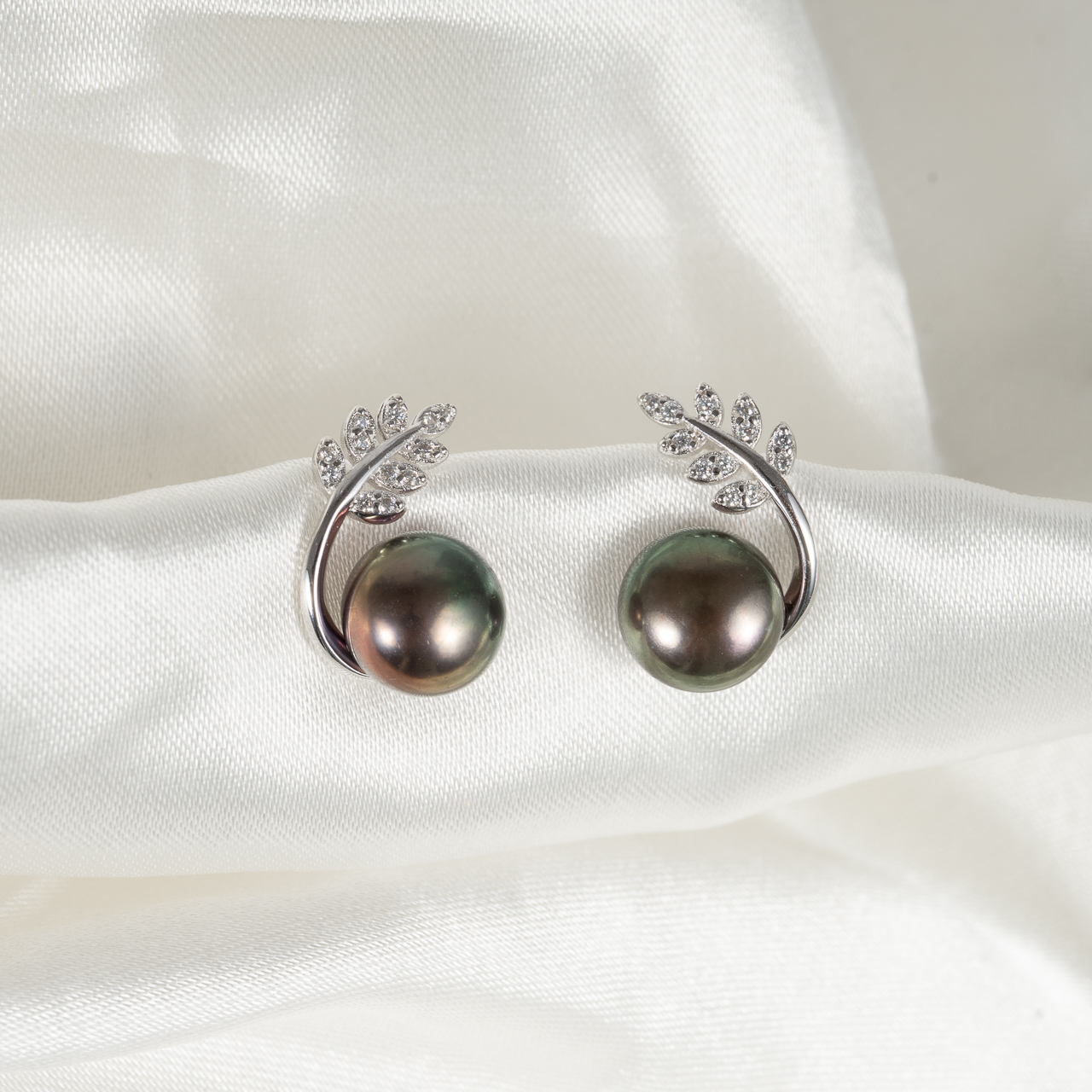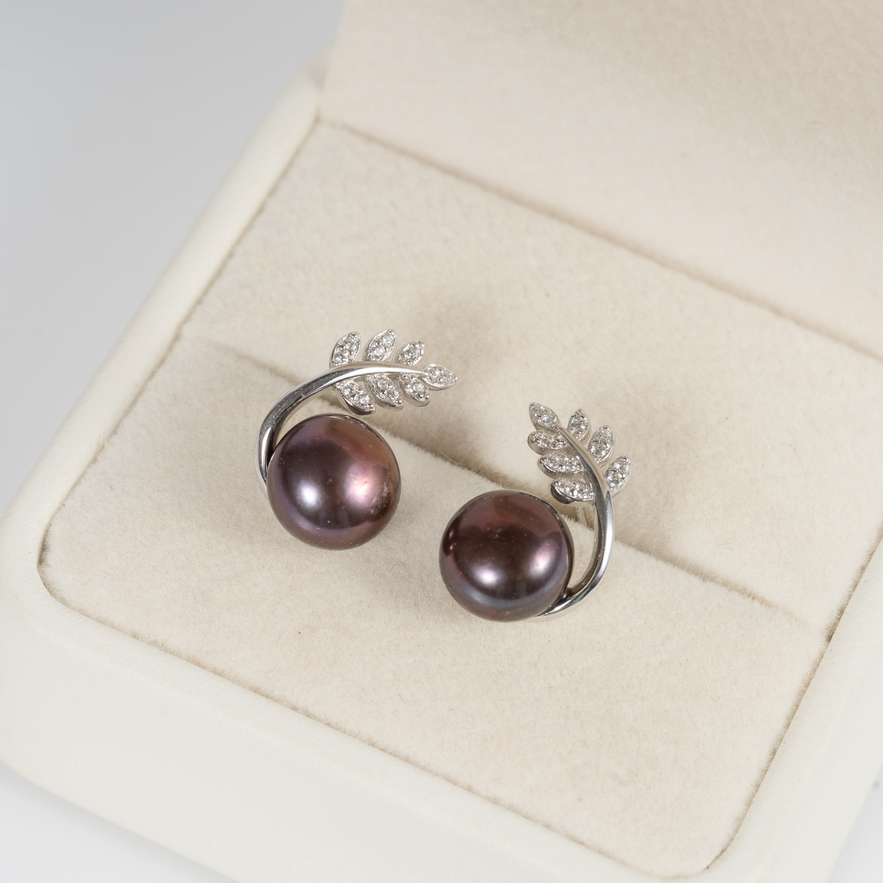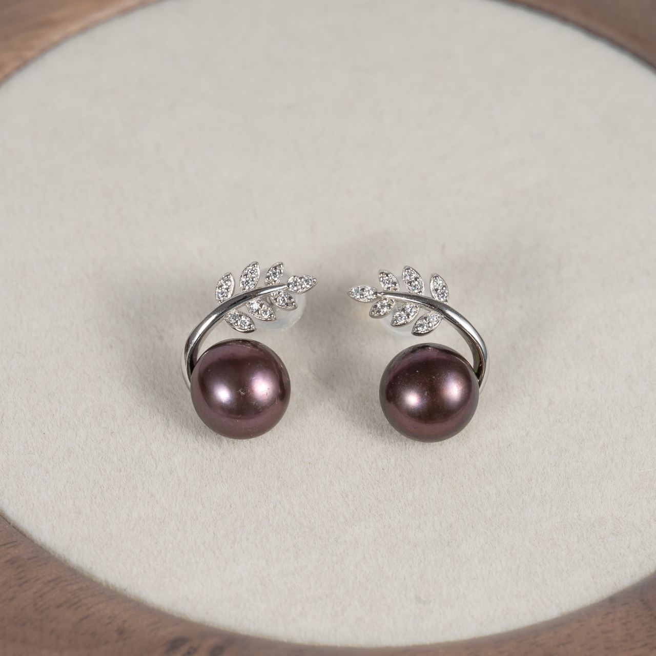 Bông Tai Ngọc Trai Nụ Đen Chiếc Lá SE1059