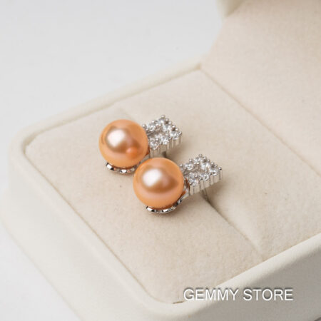 Bông Tai Ngọc Trai Nụ Hồng Hạt Tròn Đính Đá SE1028