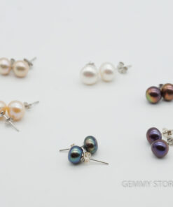 Bông tai ngọc trai nụ nhỡ 8mm hình cúc mã T16.085