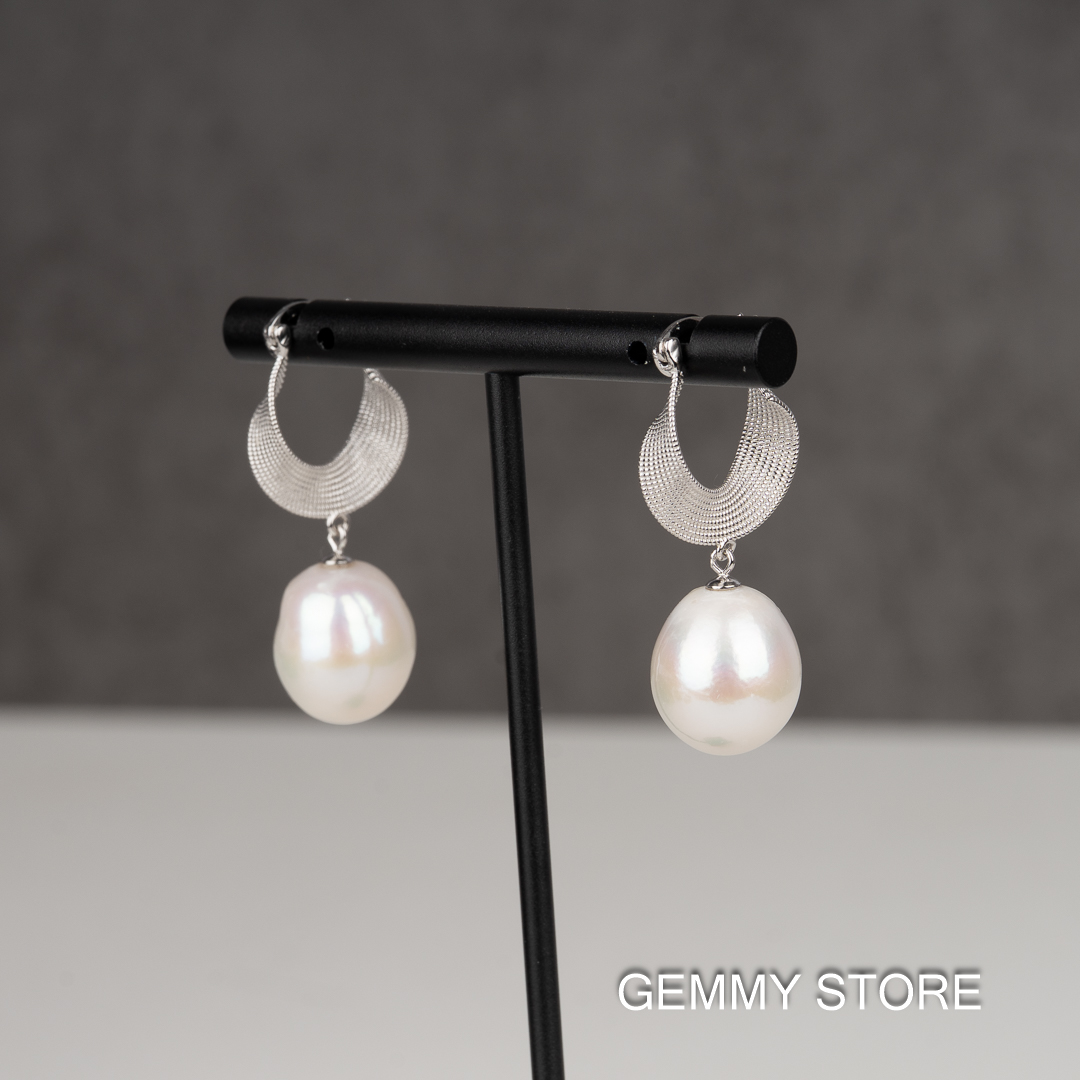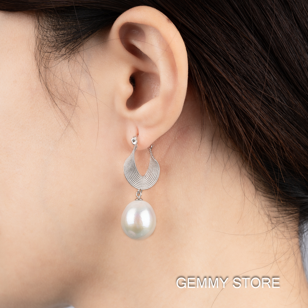 Bông Tai Ngọc Trai Trắng Baroque 11-12 ly Dáng Thả DE1010