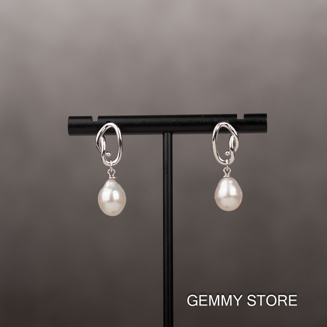 Bông Tai Ngọc Trai Trắng Baroque 9 ly Dáng Thả DE1008