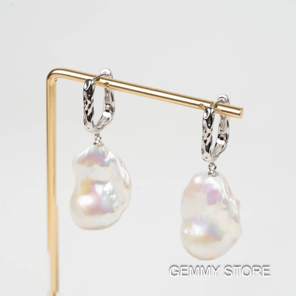 Bông Tai Ngọc Trai Trắng Dị Hình Baroque Size To DE1007