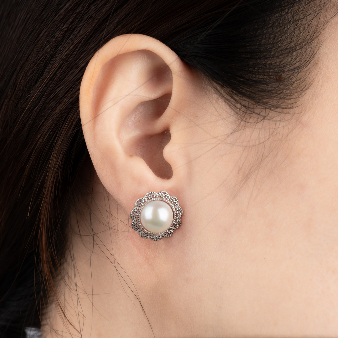 Loại ngọc: ngọc trai nuôi nước ngọt Màu sắc: Trắng Hình dạng: Cúc Kích thước:9-9.5mm Chất liệu: Bạc s925