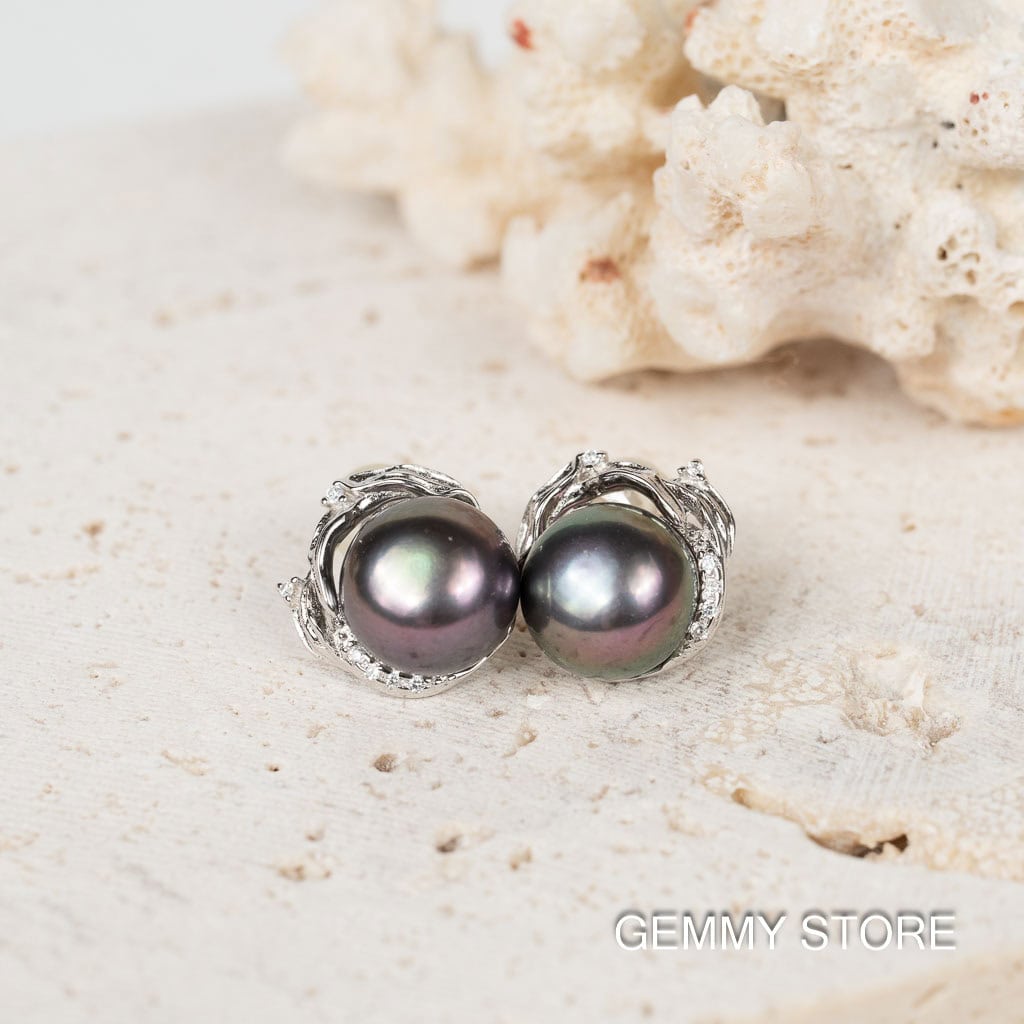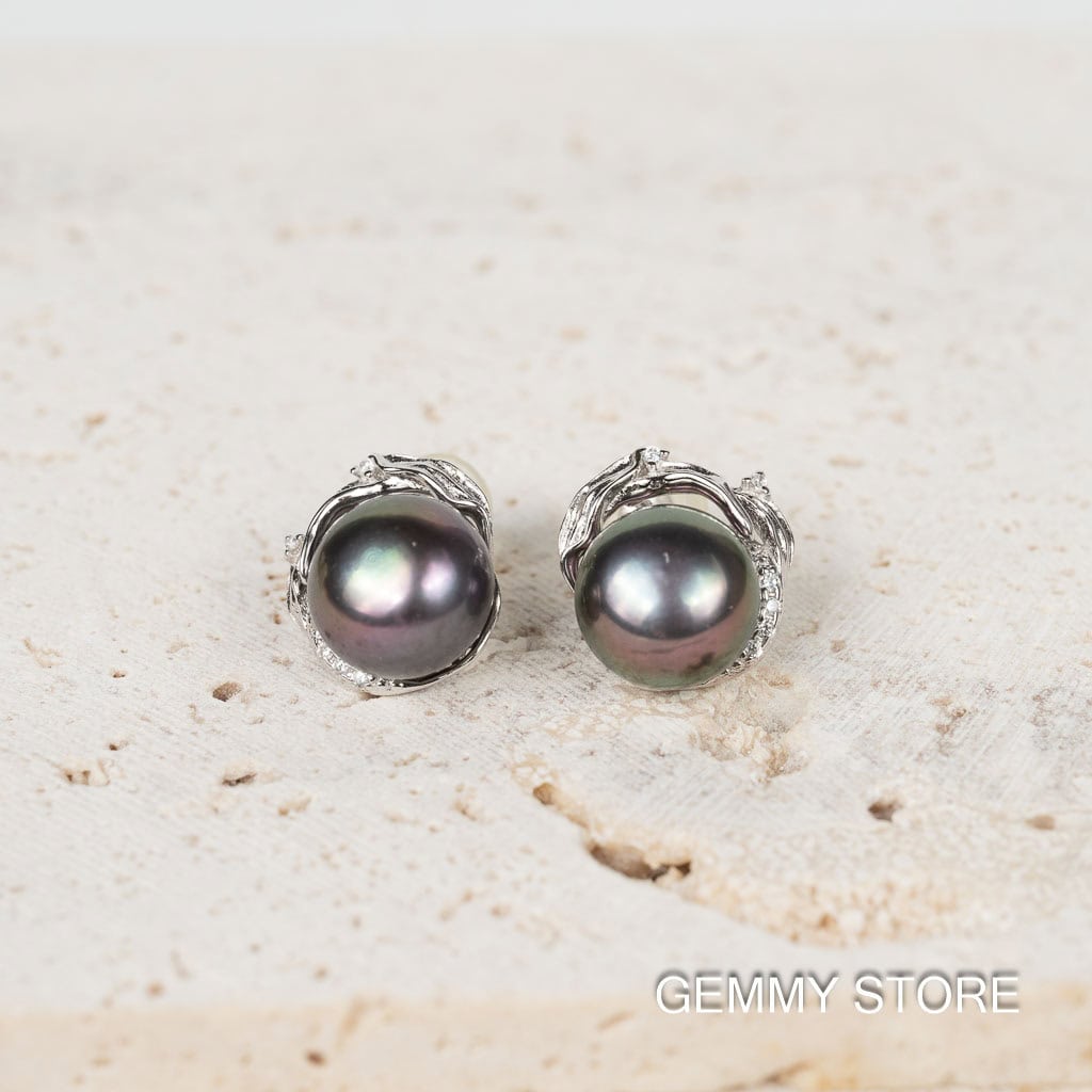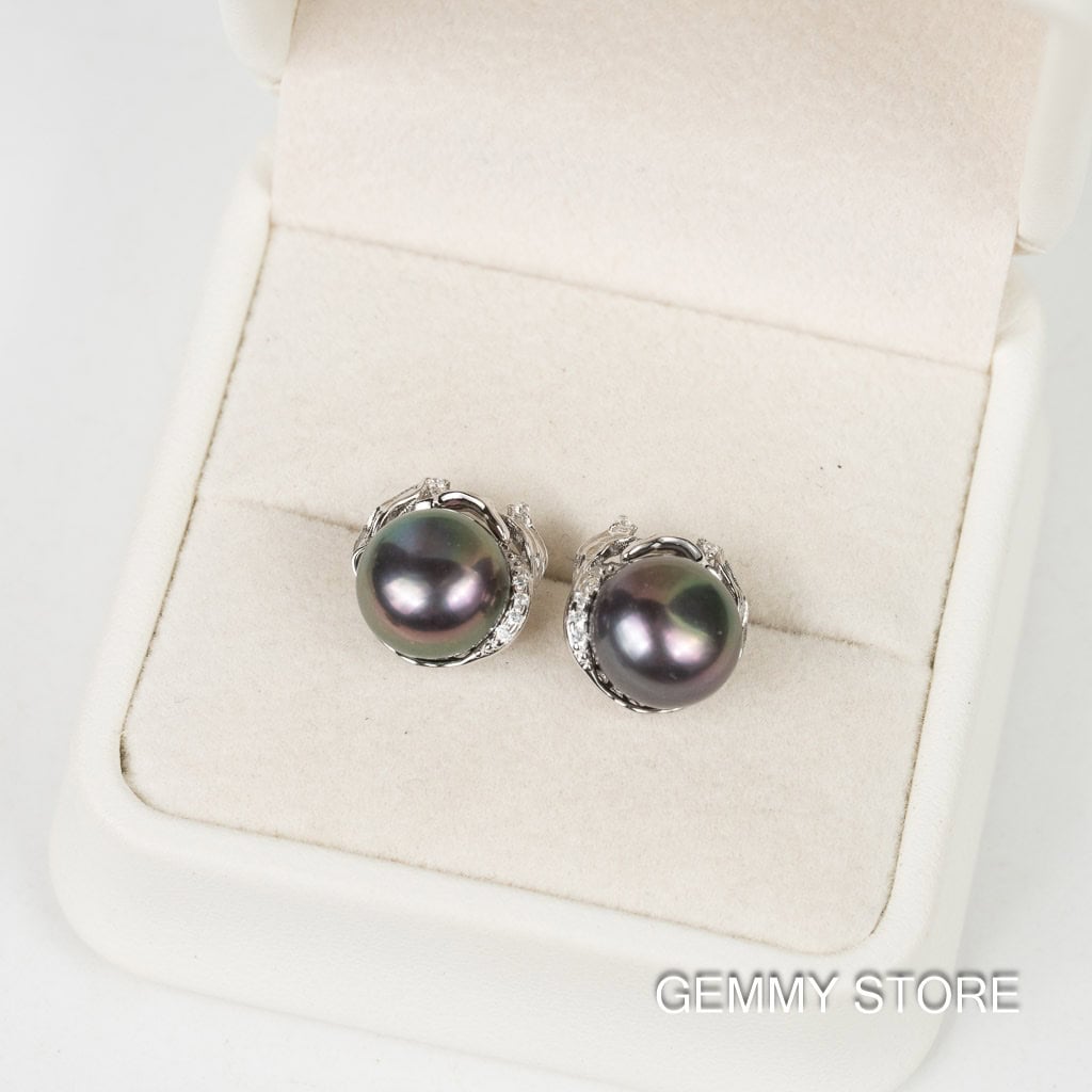 Loại ngọc: ngọc trai nuôi nước ngọt Màu sắc: đen Hình dạng: cúc Kích thước: 9-9,5 mm Chất liệu: Bạc s925
