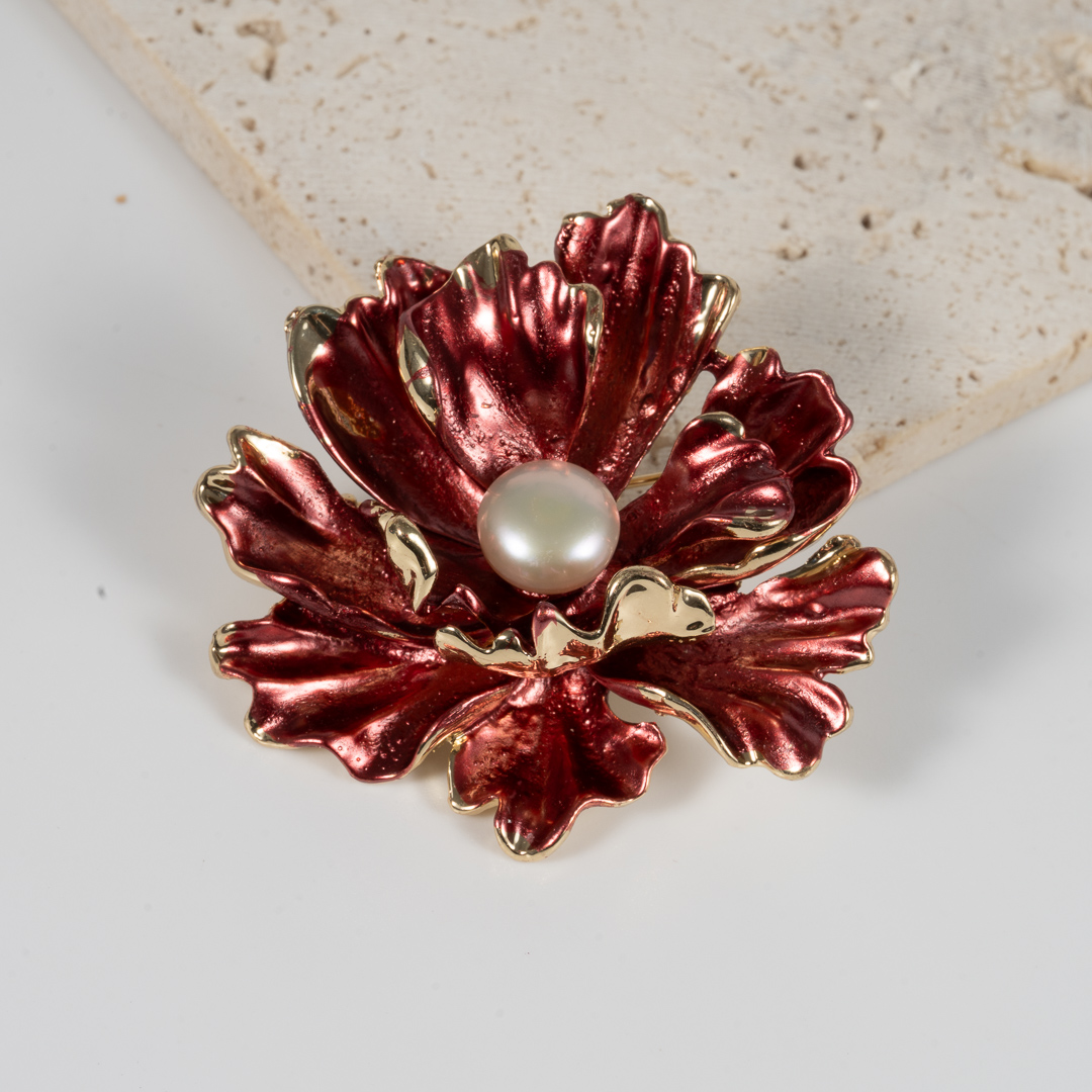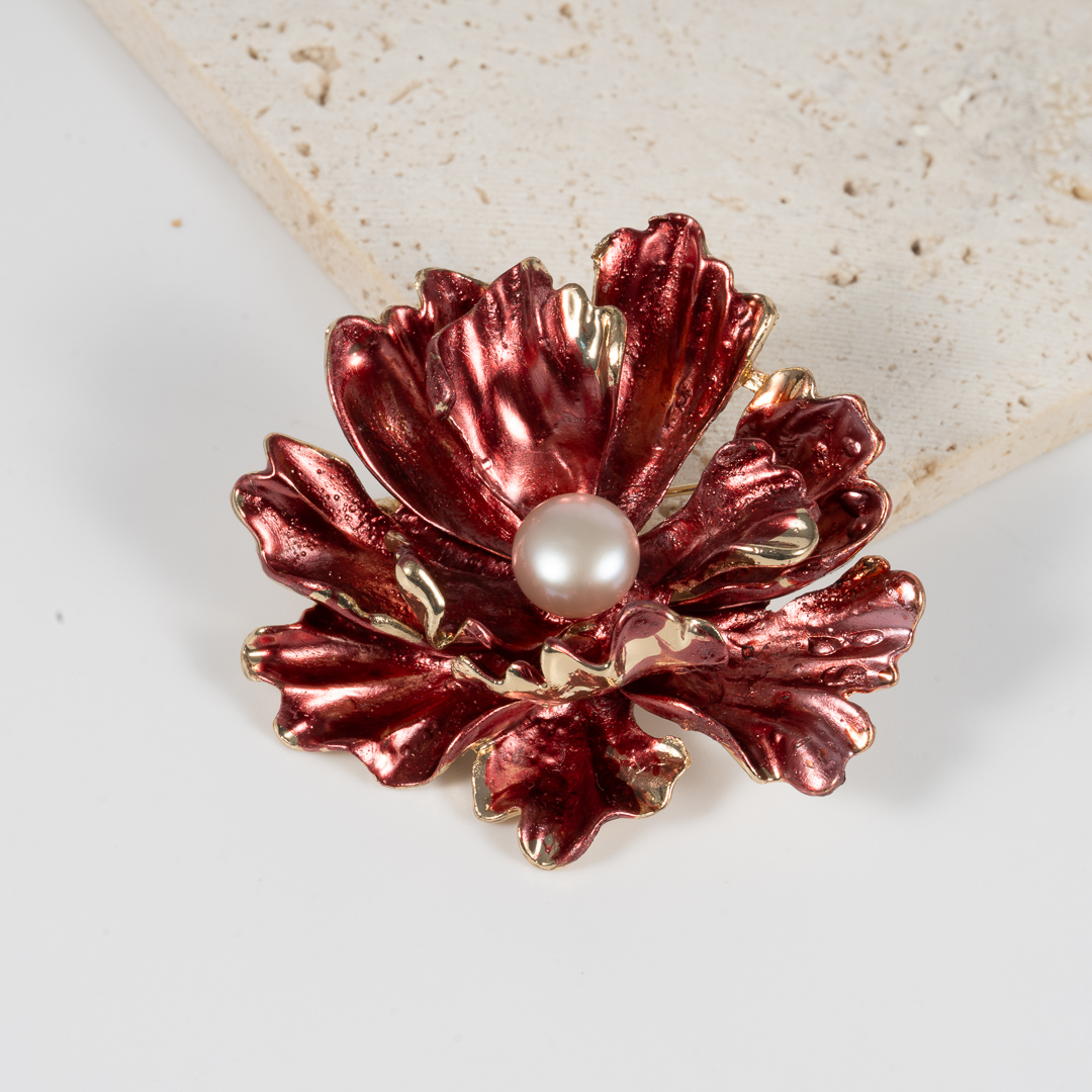 Cài Áo Ngọc Trai Mẫu Đơn Đỏ BR0103