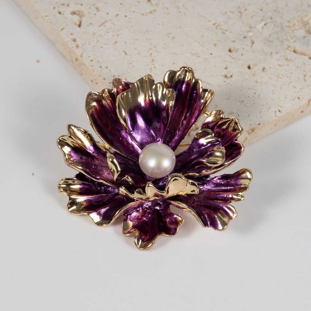 Cài Áo Ngọc Trai Mẫu Đơn Tím BR0101