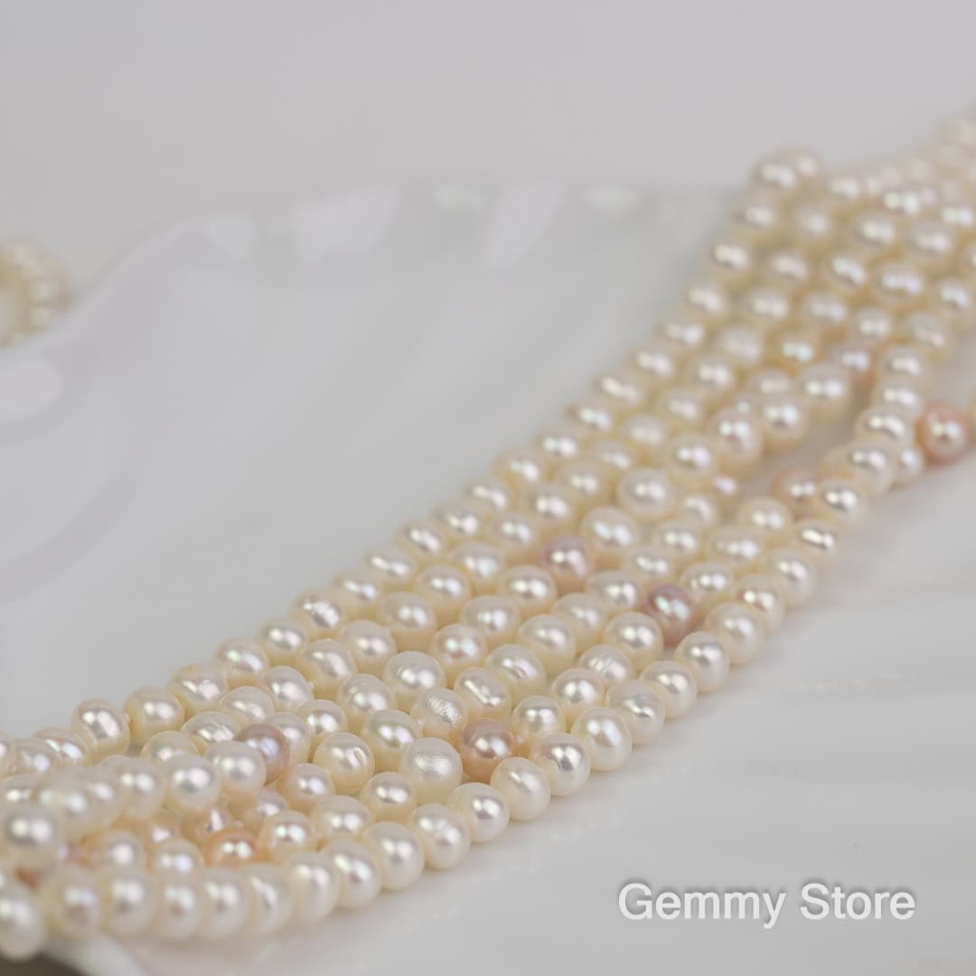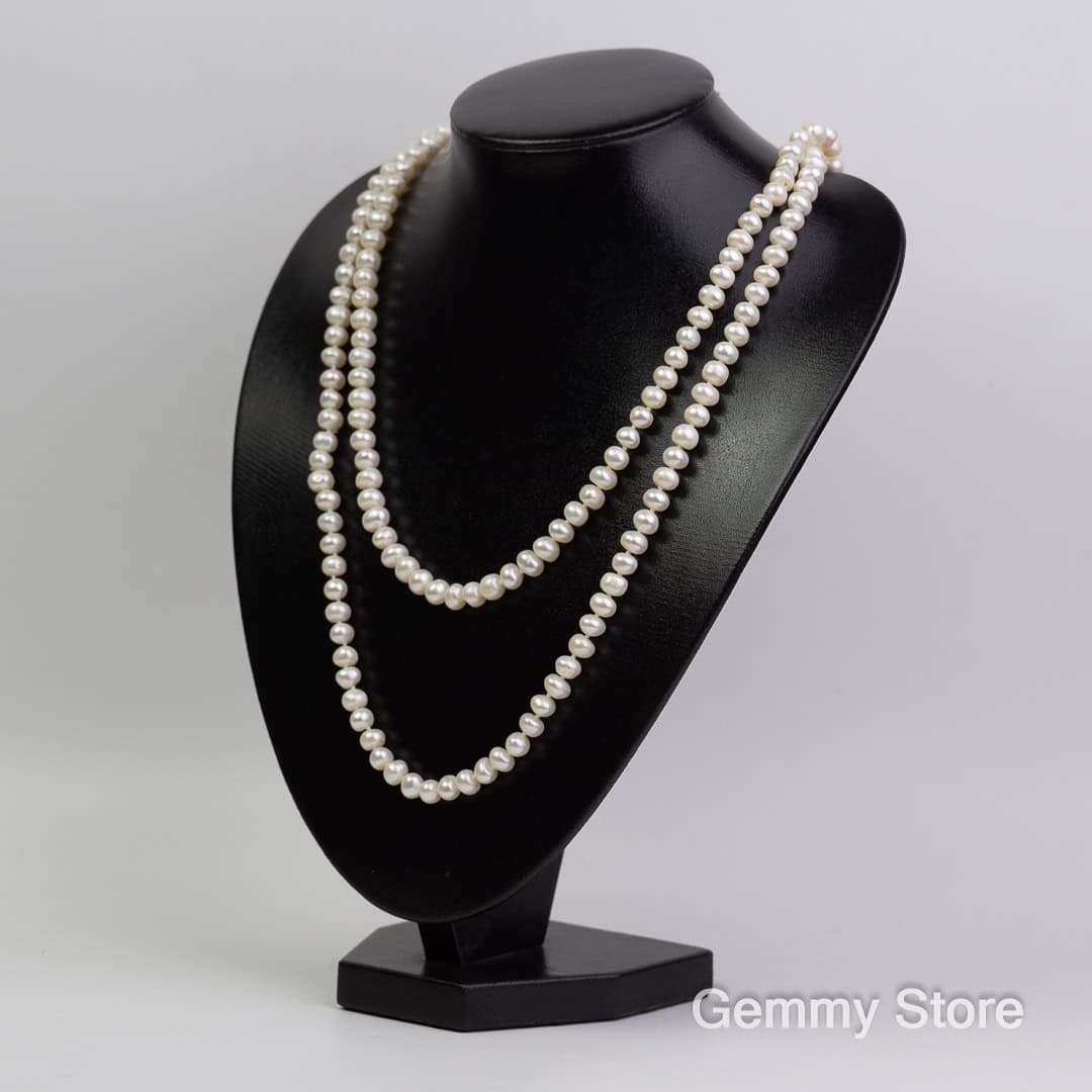 Loại ngọc: ngọc trai nuôi nước ngọt Màu sắc: trắng Hình dạng: nhiều hình dạng Kích thước: 6-8mm Độ dài: 125cm