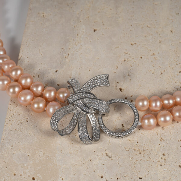Loại ngọc: ngọc trai nuôi nước ngọt Màu sắc: Hồng Hình dạng: cầu/hạt Kích thước: 8-9mm Độ dài: 59-66cm