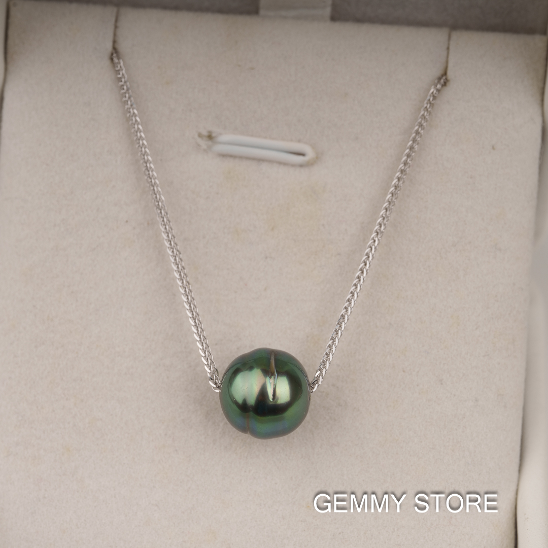 Loại ngọc: Ngọc trai biển Tahiti Màu sắc: Xanh Peacock Hình dạng: Dị Hình Kích thước: 10-11mm Chất liệu: Bạc s925